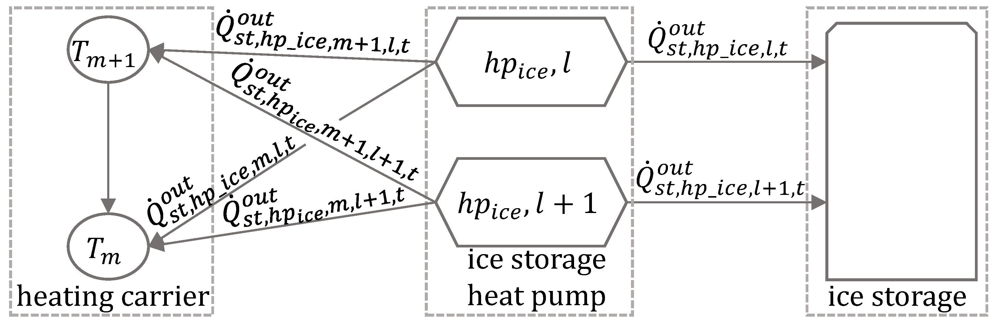 2.2.3. Ice-Storage Heat Pump Model for Discrete Temperature Levels