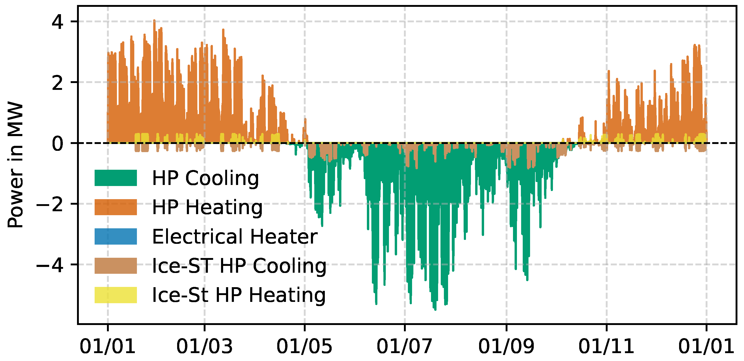 - Renaldi, R.; Friedrich, D. Multiple time grids in operational optimisation of energy systems with short- and long-term thermal energy storage. Energy 2017, 133, 784–795. [Google Scholar] [CrossRef]