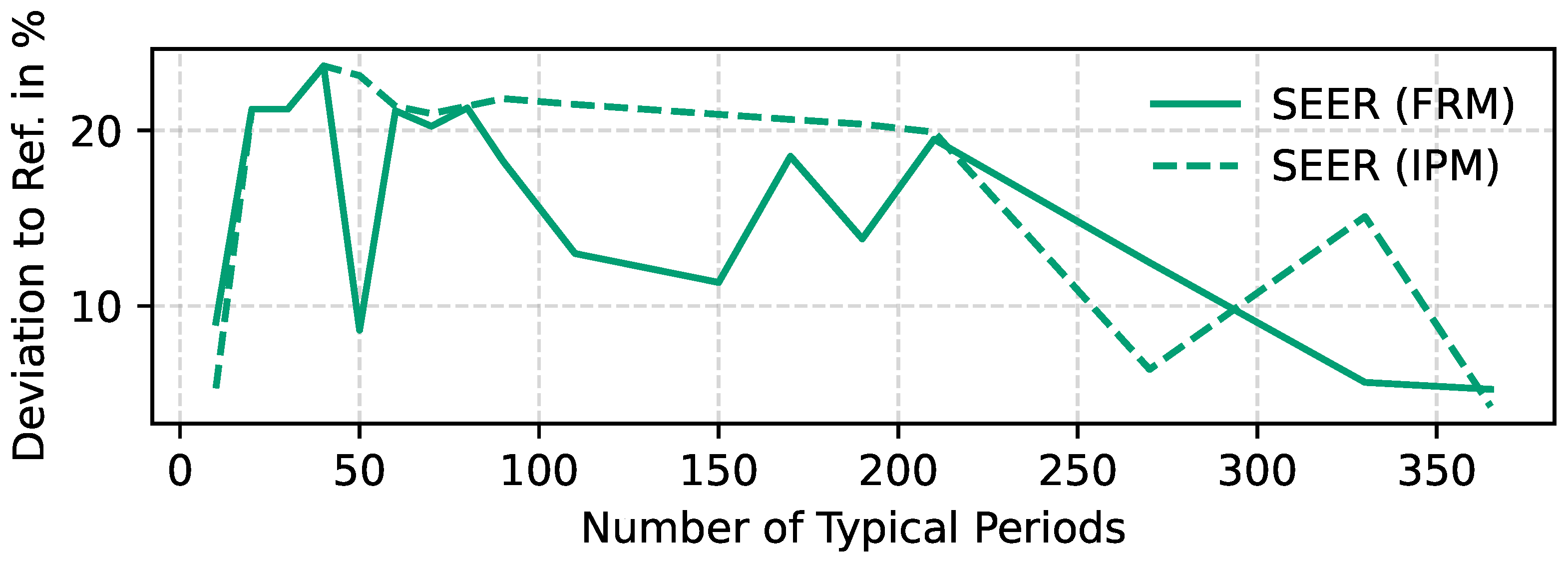 - Kotzura, L.; Markewitz, P.; Robinius, M.; Stolten, D. Time series aggregation for energy system design: Modeling seasonal storage. Appl. Energy 2018, 213, 123–135. [Google Scholar] [CrossRef]