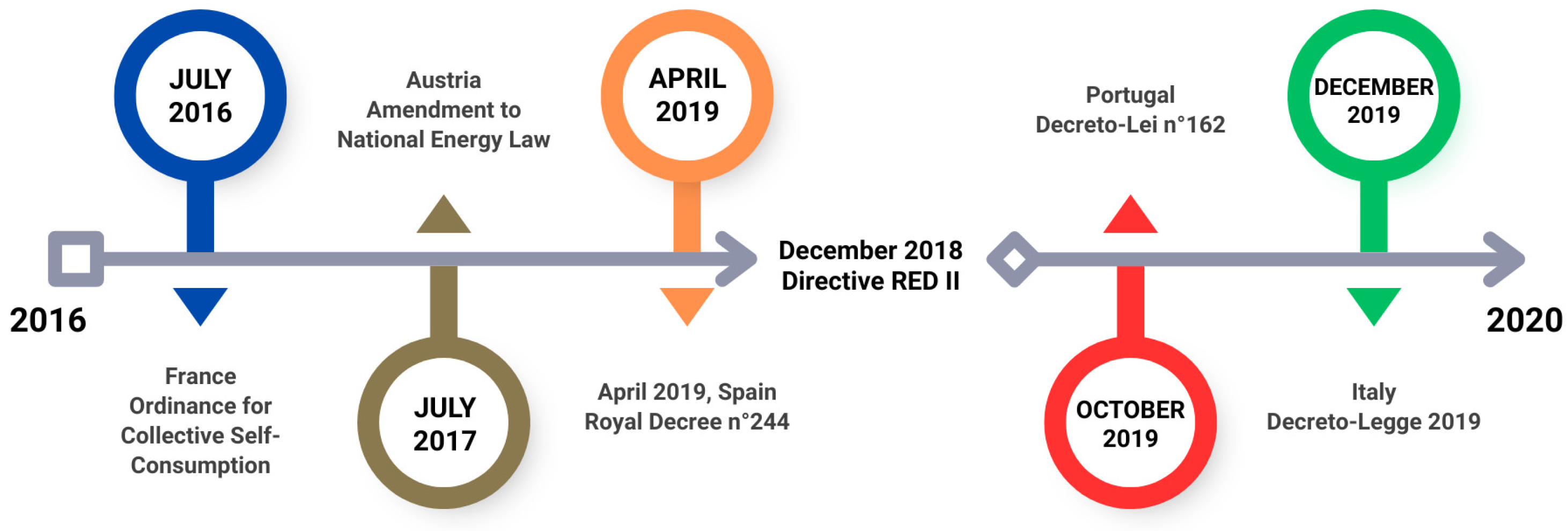 | RED II (2018/2001) [18] | Promotes the use of energy from renewable sources | Encourages member states to establish frameworks for RECs, supports prosumers, and ensures grid access |