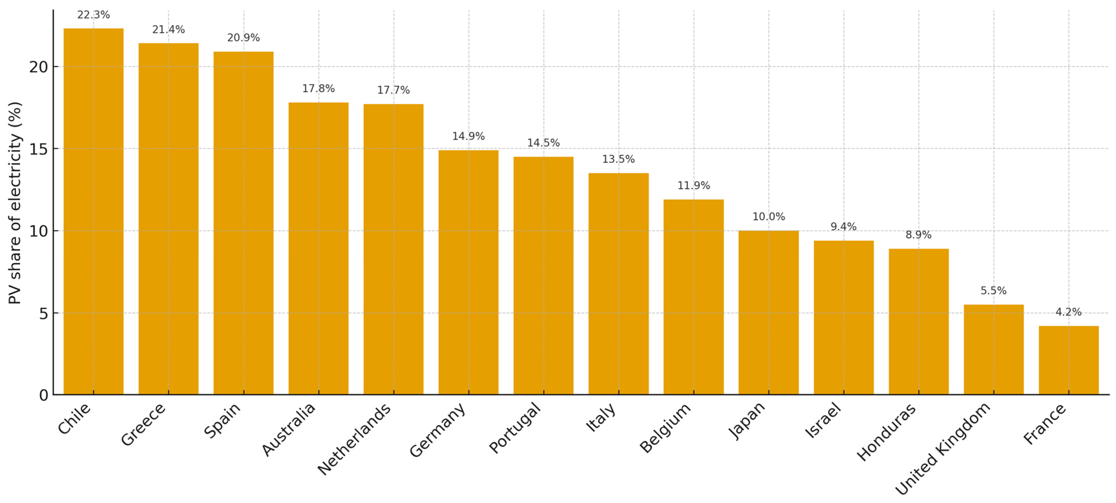 - Share of Electricity Production from Solar—Our World in Data. 2025. Available online: https://ourworldindata.org/grapher/share-electricity-solar?mapSelect=~ESP (accessed on 6 November 2025).