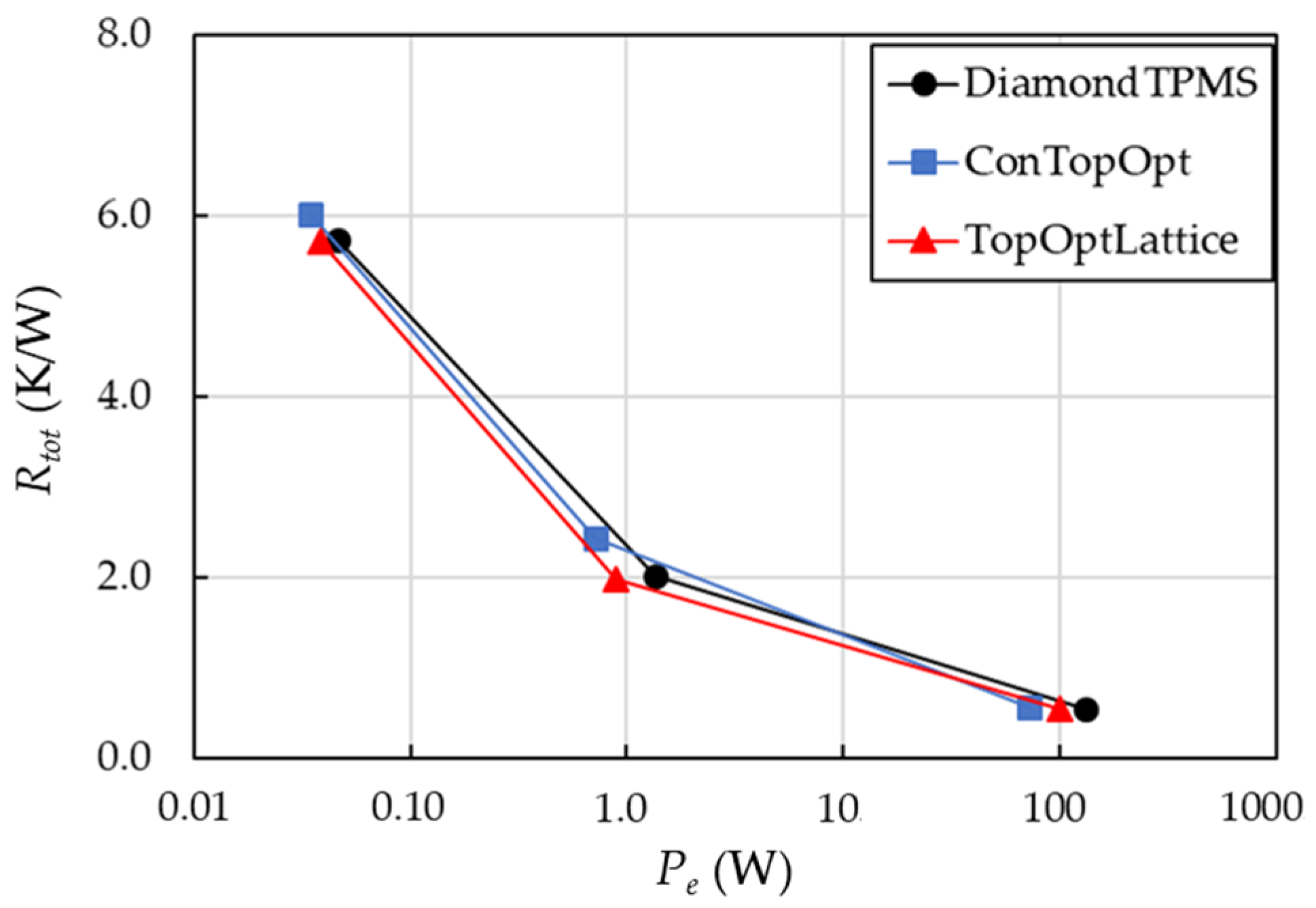 The heat exchange capability for all cases is evaluated based on the total thermal resistance (Rtot), defined as follows [33]: