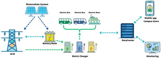 The results presented in this study demonstrate the need for integration between energy planning and sustainable transportation, since the more robust use of electric modes of transport causes an increase in the energy demand profile used by the campus. The operation of electric buses under tropical conditions showed that energy efficiency depends heavily on intelligent load management and the resilience of the system in the face of climate variations and even the quality of the network provided by the utility company.