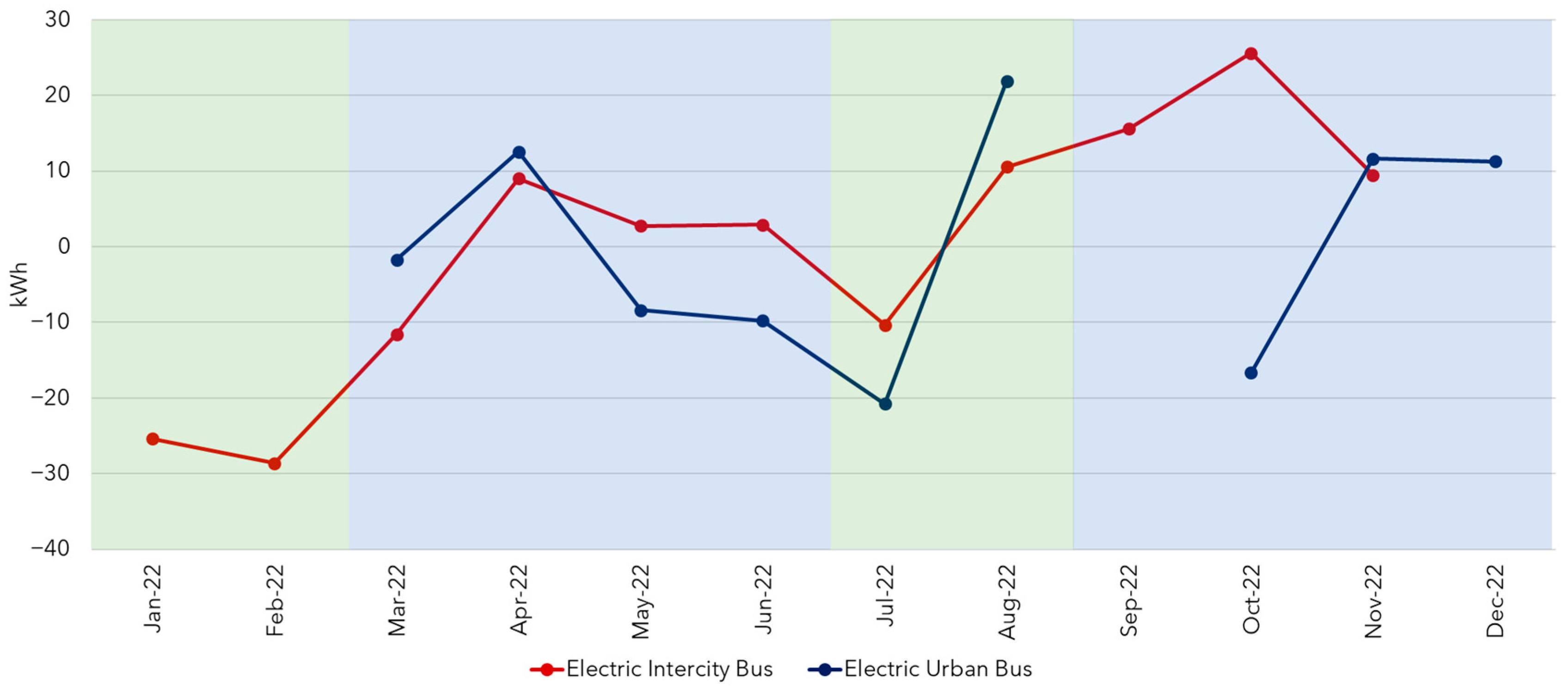 - Variations in EBs energy consumption according to the academic calendar and route type;