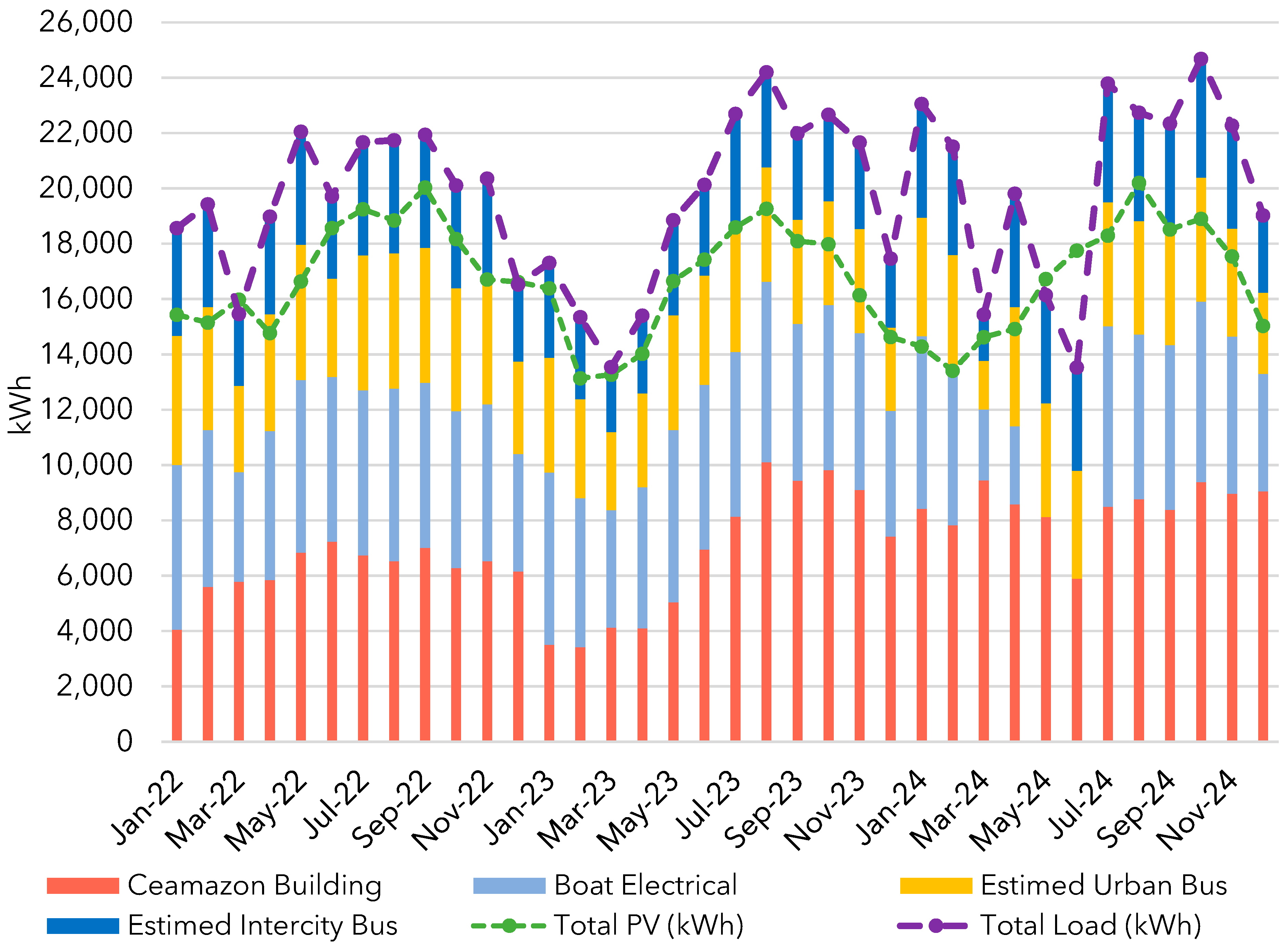 - To analyze operational and simulated data from electric buses, the CEAMAZON hybrid microgrid, and the electric catamaran.