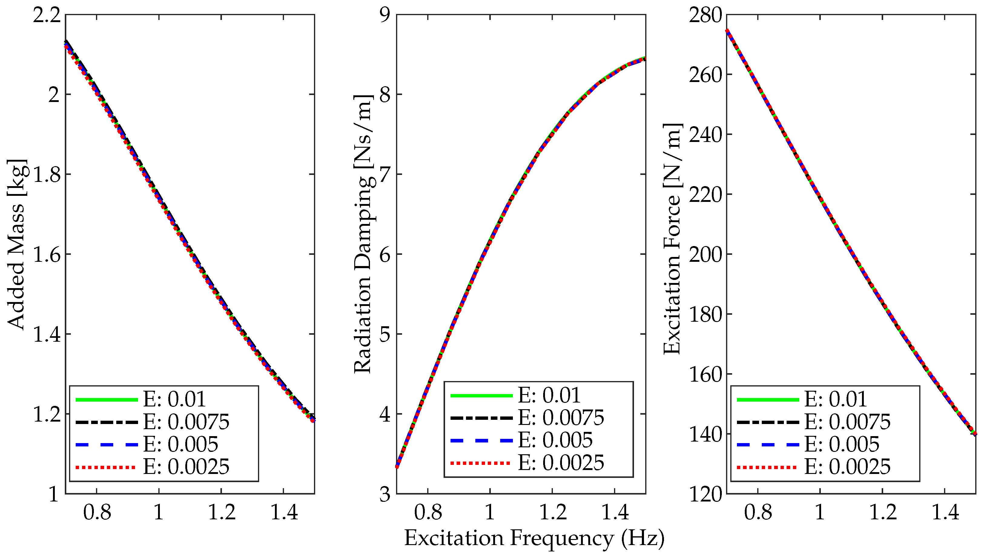 Excitation Frequency, f (Hz)Wavelength, λ (m)Wave Height H (m)