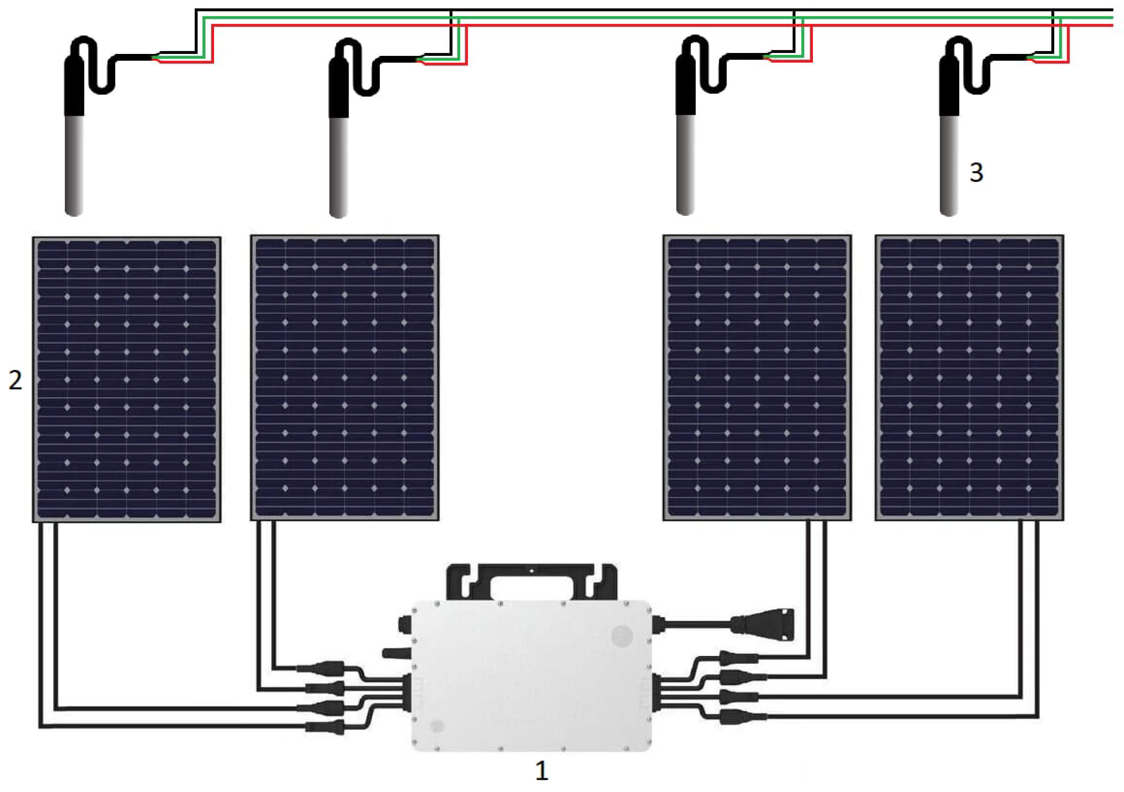 A photovoltaic (PV) system was constructed using a distributed network topology of solar panels in a modular form and Hoymiles microinverters. Unlike traditional systems, where a single inverter receives the energy generated by the entire network of photovoltaic panels, each microinverter receives energy from four photovoltaic panels as shown in