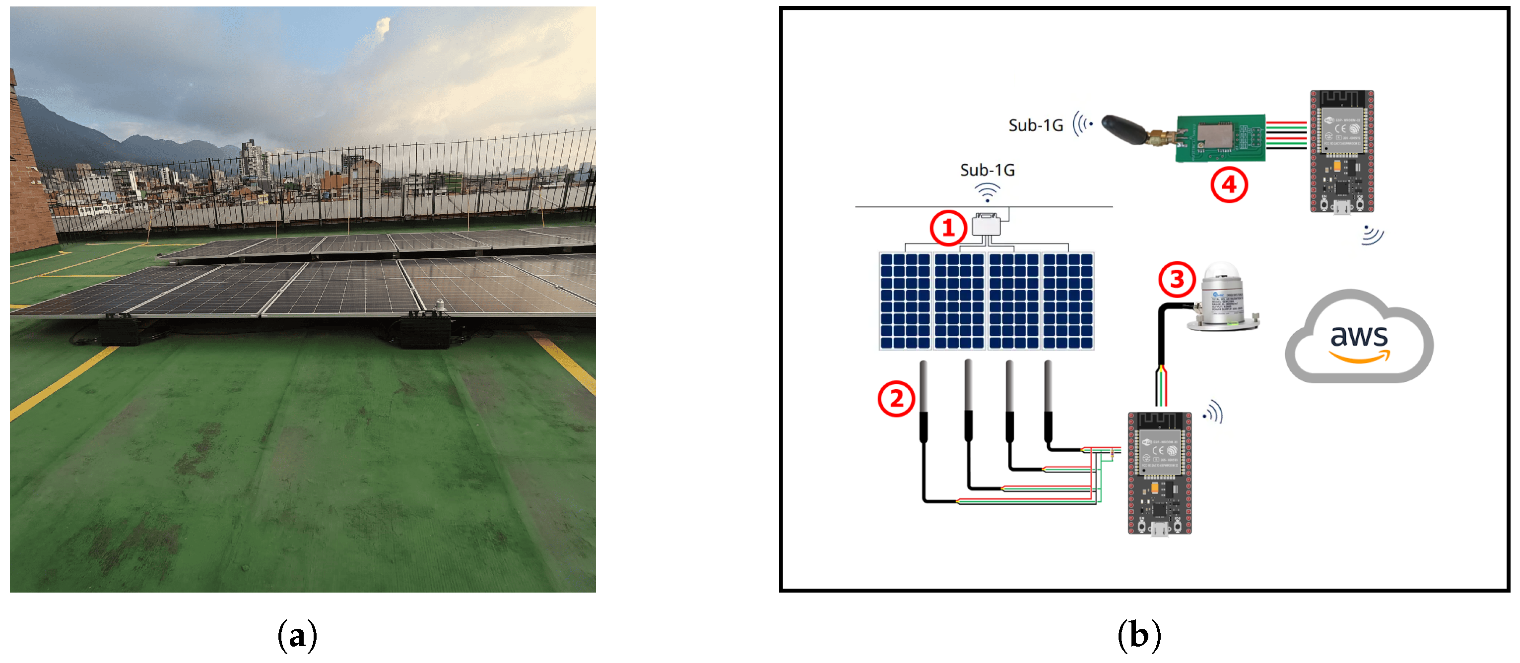 Figure 1. This study’s solar power system is built with twelve 550 W p-type monocrystalline PERC panels from Yingli Solar (Baoding, China). These panels are connected to three 2 kWp microinverters, with four panels managed by each inverter. The microinverters are linked together in a cascade configuration, a design that allows the system’s energy capacity to be easily modified in the future.