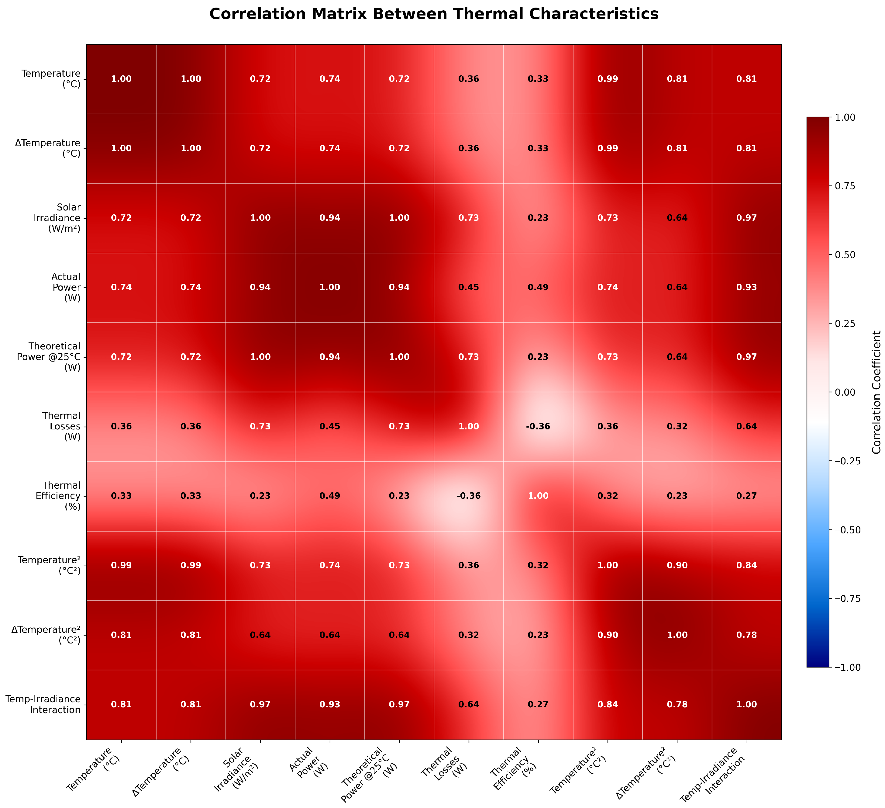 Perfect Mathematical Relationships: The correlation matrix confirms perfect correlations (r = 1.00) between Tcell and , validating the mathematical transformation used throughout this study. This relationship serves as an internal consistency check for the thermal measurement system. High Thermal Coupling: Strong correlations are observed between G_irradiance and Tcell_squared (r = 0.98), as well as G_irradiance and temp_irrad_interaction (r = 0.97), demonstrating the significant coupling between solar irradiation and non-linear temperature effects in PERC modules. These relationships confirm that thermal losses are fundamentally driven by the interaction between irradiance and temperature rather than by these variables independently.