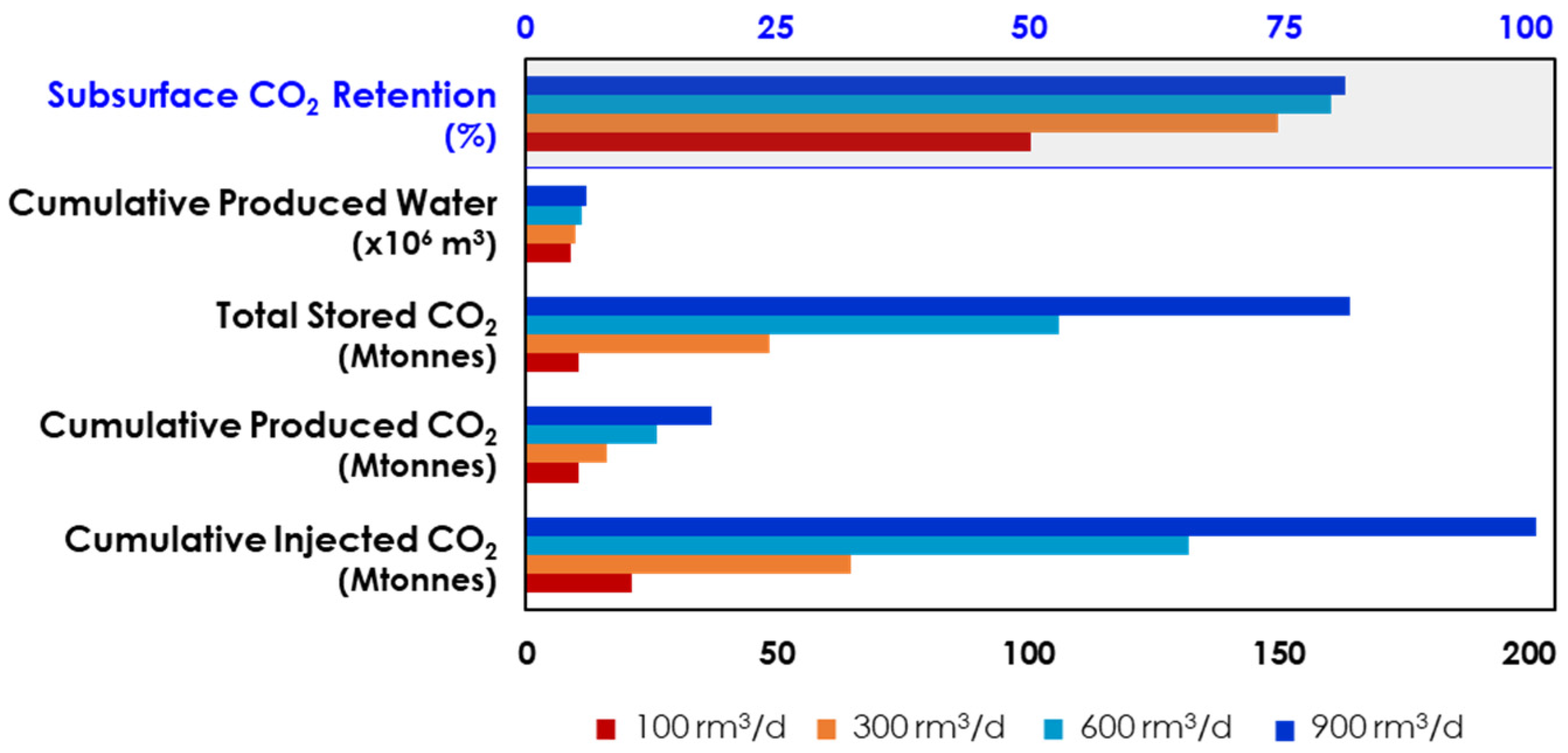 | CO2 injection rate (rm3/d) * | 600 (5-yr avg. max. injection rate) | |