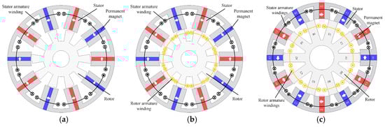 FSPM machine topologies. (a) SP FSPM. (b) SP-DF-FSPM. (c) Poly-phase DF-FSPM.