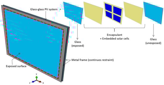 Assembly of the typical numerical model (ABAQUS) for the glass–glass BIPV module with four linearly restrained edges (4L configuration).