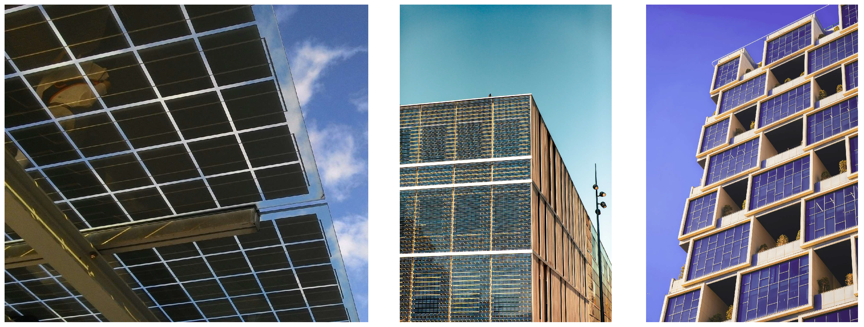 Examples of BIPV applications (figures reproduced with permission from @Unsplash).