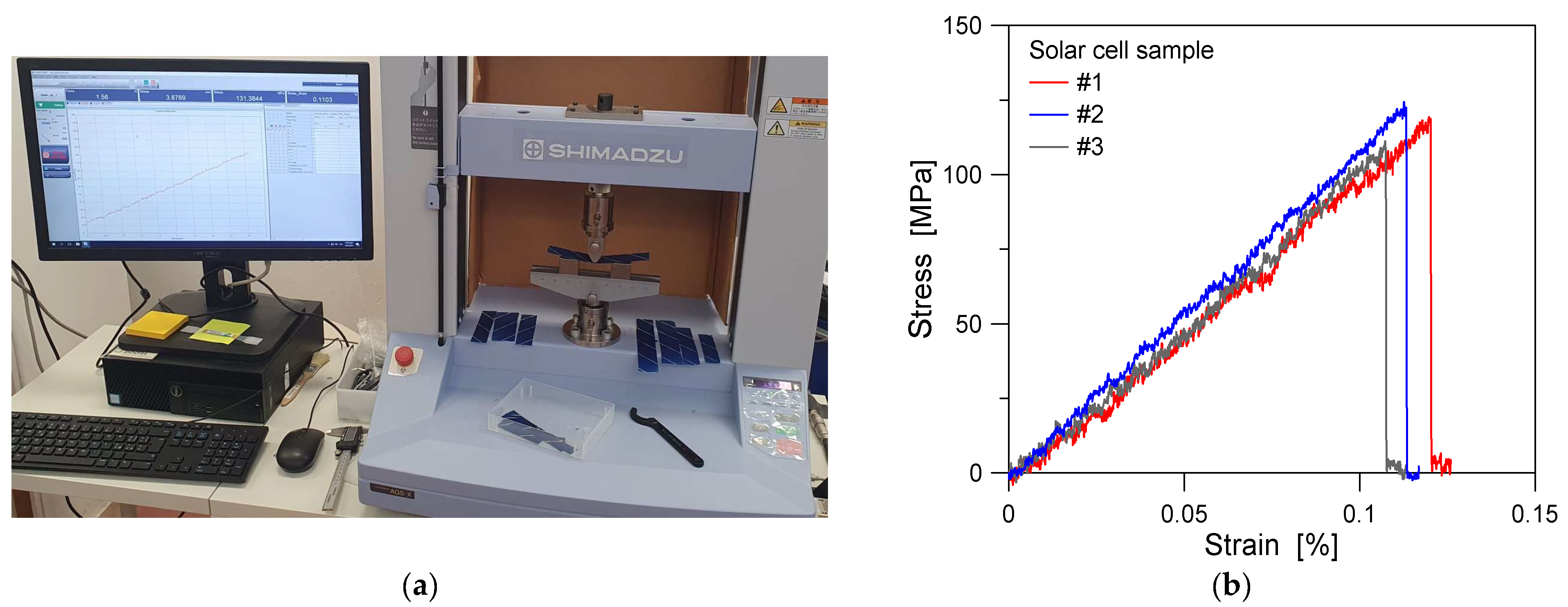 - WSong, J.R.; Tippabhotla, S.K.; Tay, A.A.O.; Budiman, A.S. Numerical Simulation of the Evolution of Stress in Solar Cells During the Entire Manufacturing Cycle of a Conventional Silicon Wafer Based Photovoltaic Laminate. IEEE J. Photovolt. 2018, 8, 210–217. [Google Scholar]
