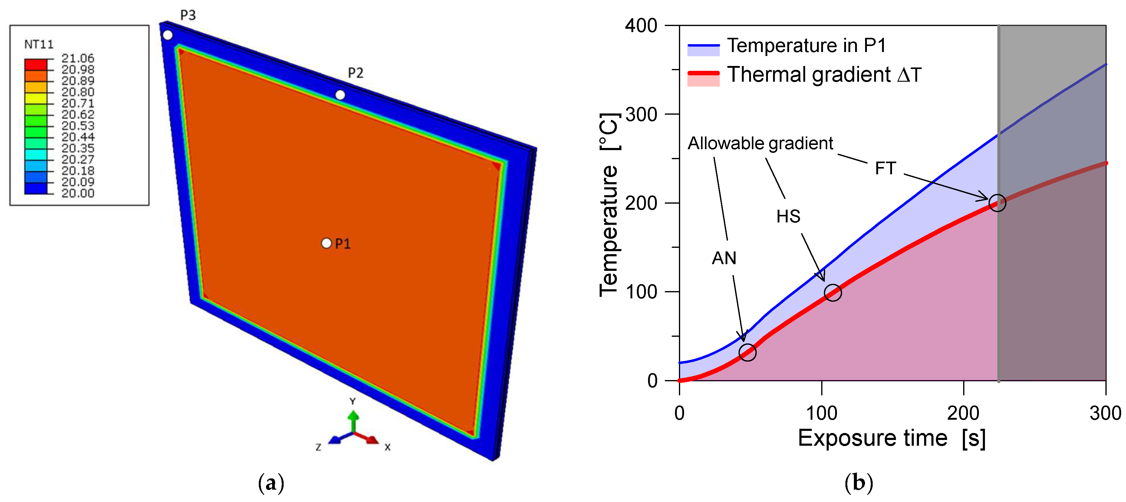 - Honfi, D.; Sjöström, J.; Bedon, C.; Kozłowski, M. Experimental and Numerical Analysis of Thermo-Mechanical Behaviour of Glass Panes Exposed to Radiant Heatin. Fire 2022, 5, 124. [Google Scholar] [CrossRef]