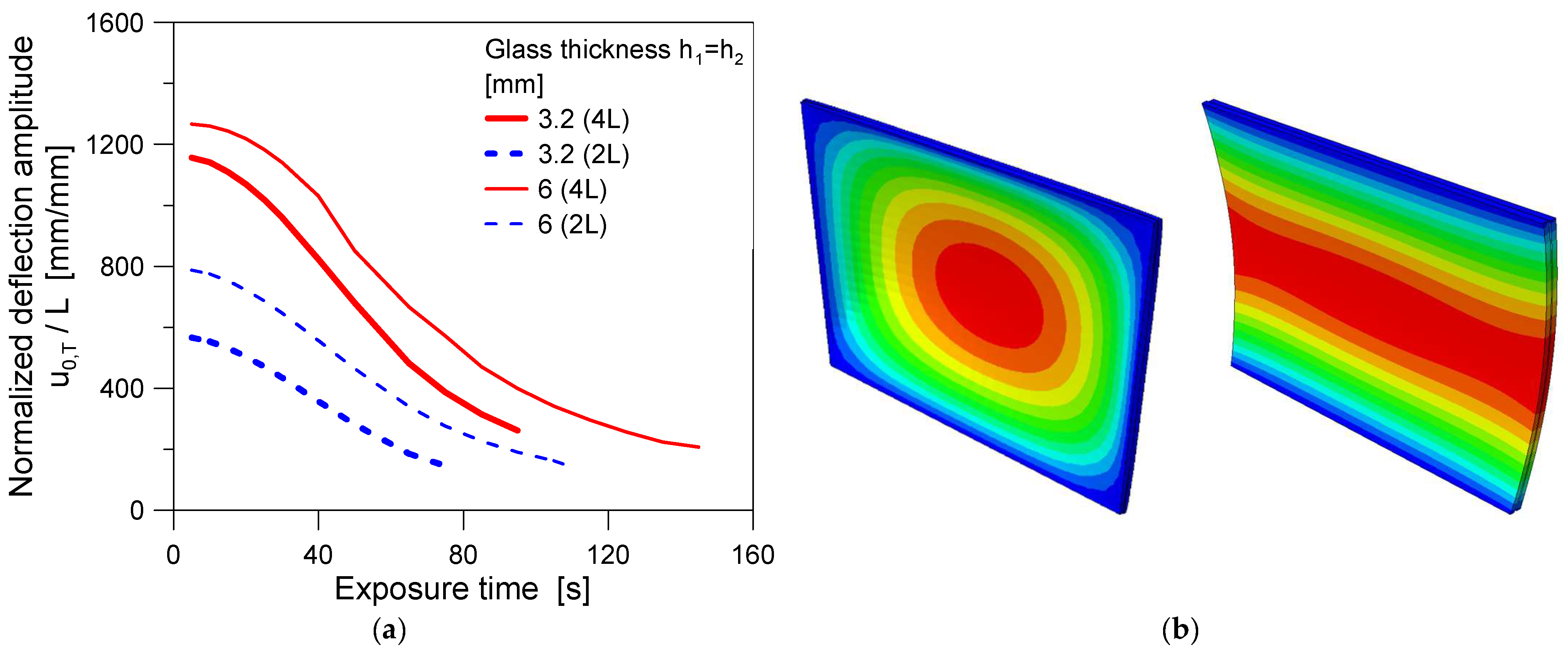 - Sabsabi, A.; Youssef, M.A.; El-Fitiany, S.F.; Vedrtnam, A. Simplified structural analysis of framed ordinary non-tempered glass panels during fire exposure. Fire Saf. J. 2021, 122, 103357. [Google Scholar] [CrossRef]