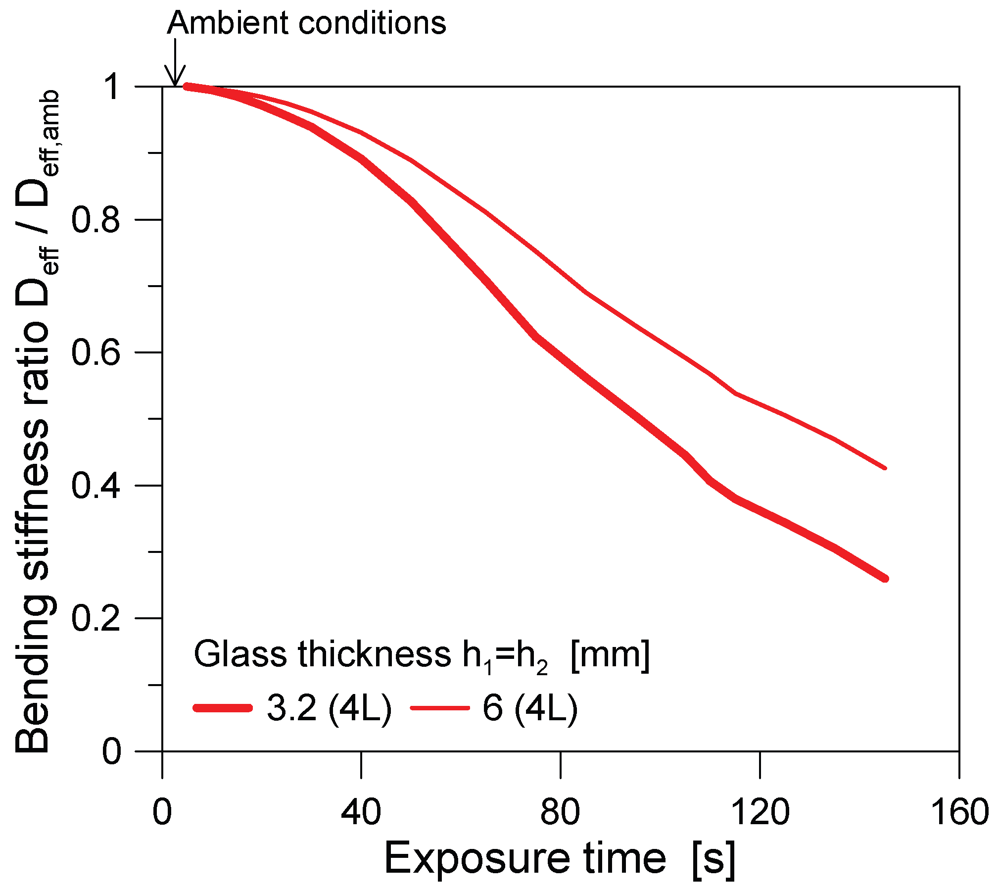 - In particular, due to combined thermo-mechanical phenomena, the increase in glass thickness has no proportional benefits in terms of mechanical response and residual capacity under elevated temperature scenarios.