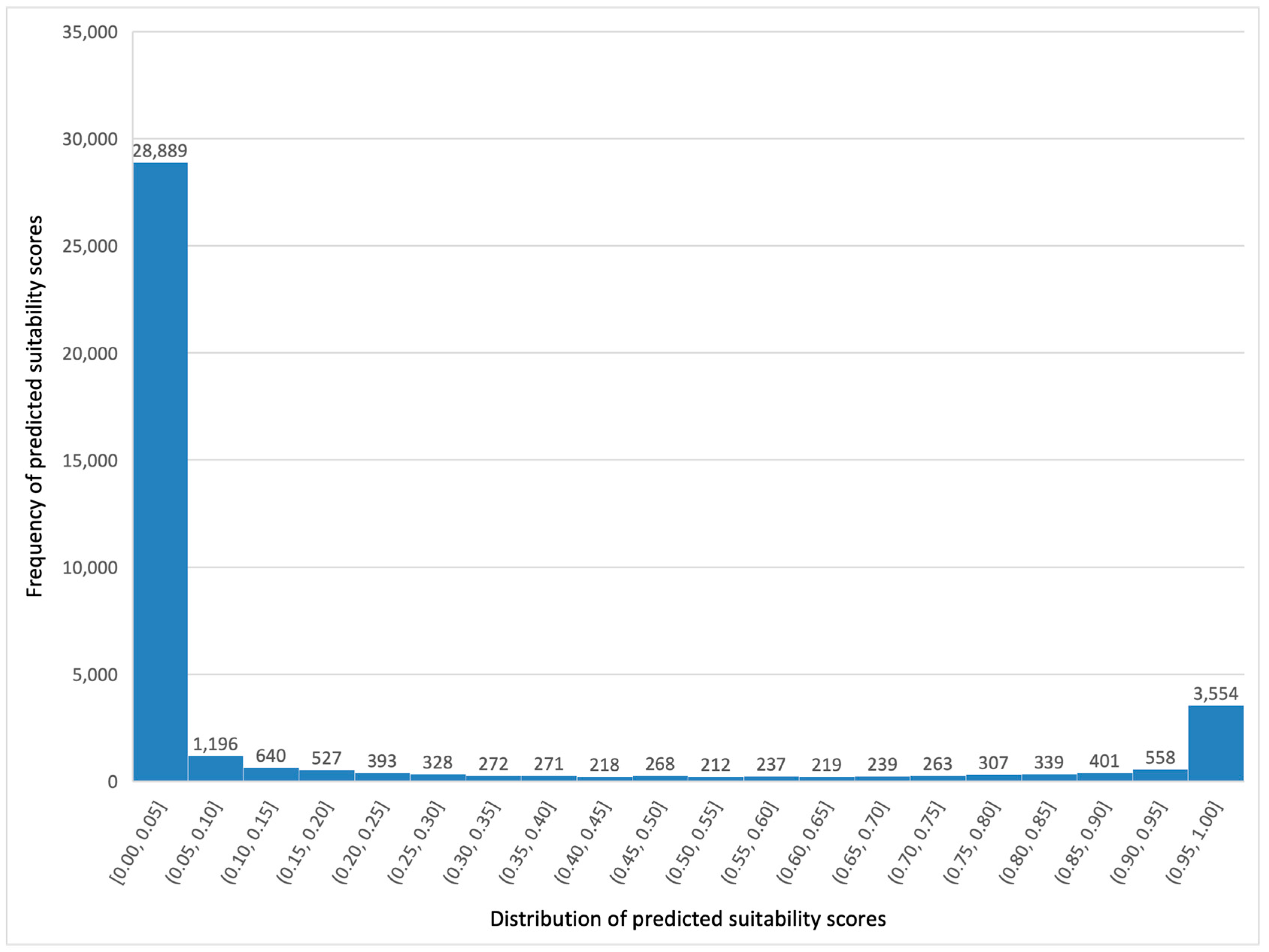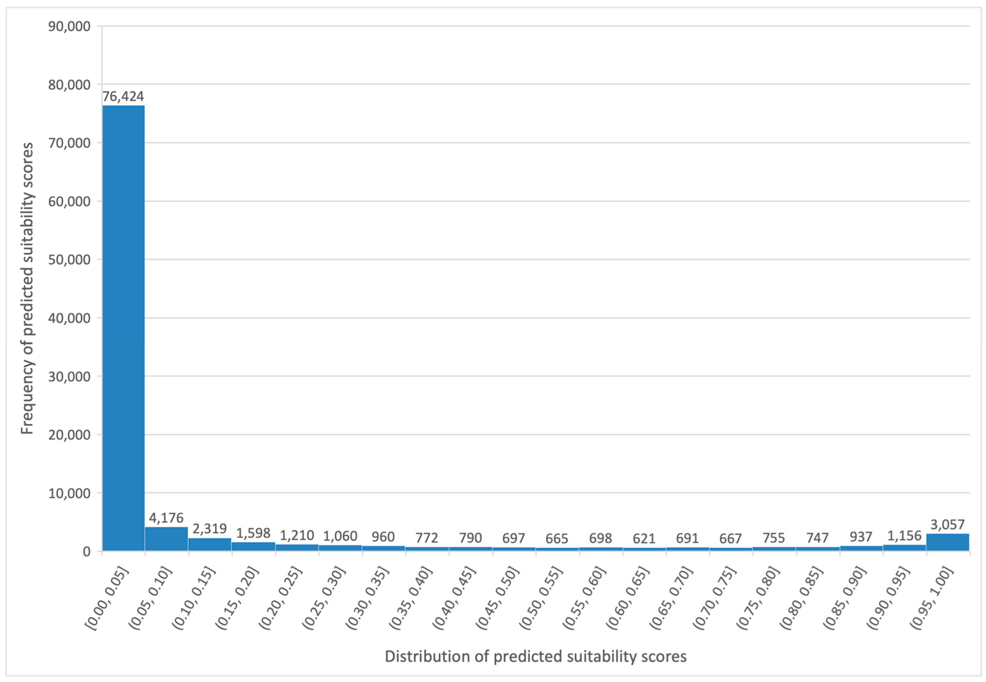 - Randomly generated points in the training and testing datasets exhibited zero values more frequently and were deemed unsuitable for analysis. For instance, random points situated in the center of Warsaw or within lakes represent locations where wind turbines cannot be constructed and, therefore, these were removed prior to the analysis.