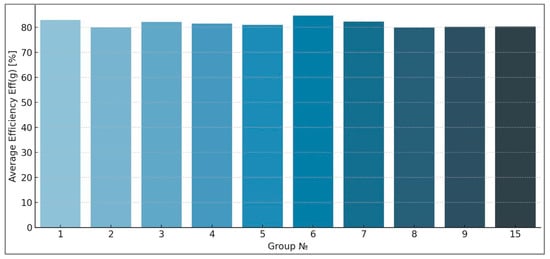 Thus, a partition of all 286 configurations into a set of equivalent classes (groups) is obtained, each characterized by a triple (Power Class/Dominant Type/Risk). Each group is evaluated with , , , , etc., in order to compare not by single configurations, but by stable classes that have the same “label” on the three key axes.