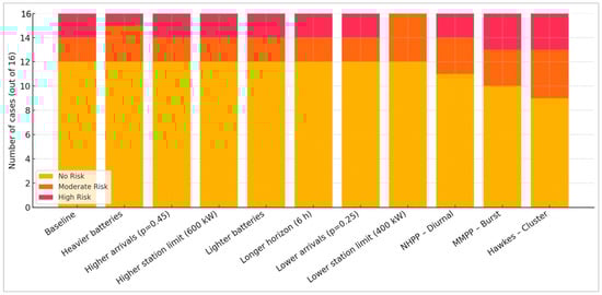 | Longer horizon (6 h) | 13 | 0 | 0 | 0 | 10 | 500 | High (>350 kW) | 391.67 | 500 | 50 | 78.33 | 78.33 | High Risk |