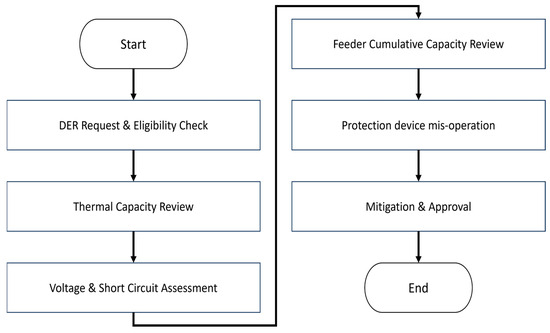 After addressing the administrative procedures, the next step is to conduct a comprehensive technical review of the DER’s impact to ensure stable and safe integration into the distribution network. The technical review process, summarized in Figure 2, is designed to verify that each interconnection request meets the operational and safety criteria defined in KEPCO’s technical guidelines.