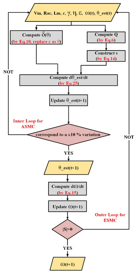 The inner adaptive loop updates based on the RLS-estimated capacitance and the adaptive law, while the outer sliding mode loop adjusts the inverter frequency using the updated parameter. This ASMC–ESMC dual-loop structure is shown in Figure 4. In this multi-loop strategy, (i) the inner loop handles parameter uncertainty and capacitance variation, and (ii) the outer loop ensures zero reactive power and resonance by adjusting the inverter frequency. The proposed ASMC structure enables the controller to eliminate pseudo-resonance, track frequency during capacitance changes, and maintain resonance and high efficiency under dynamic misalignment.