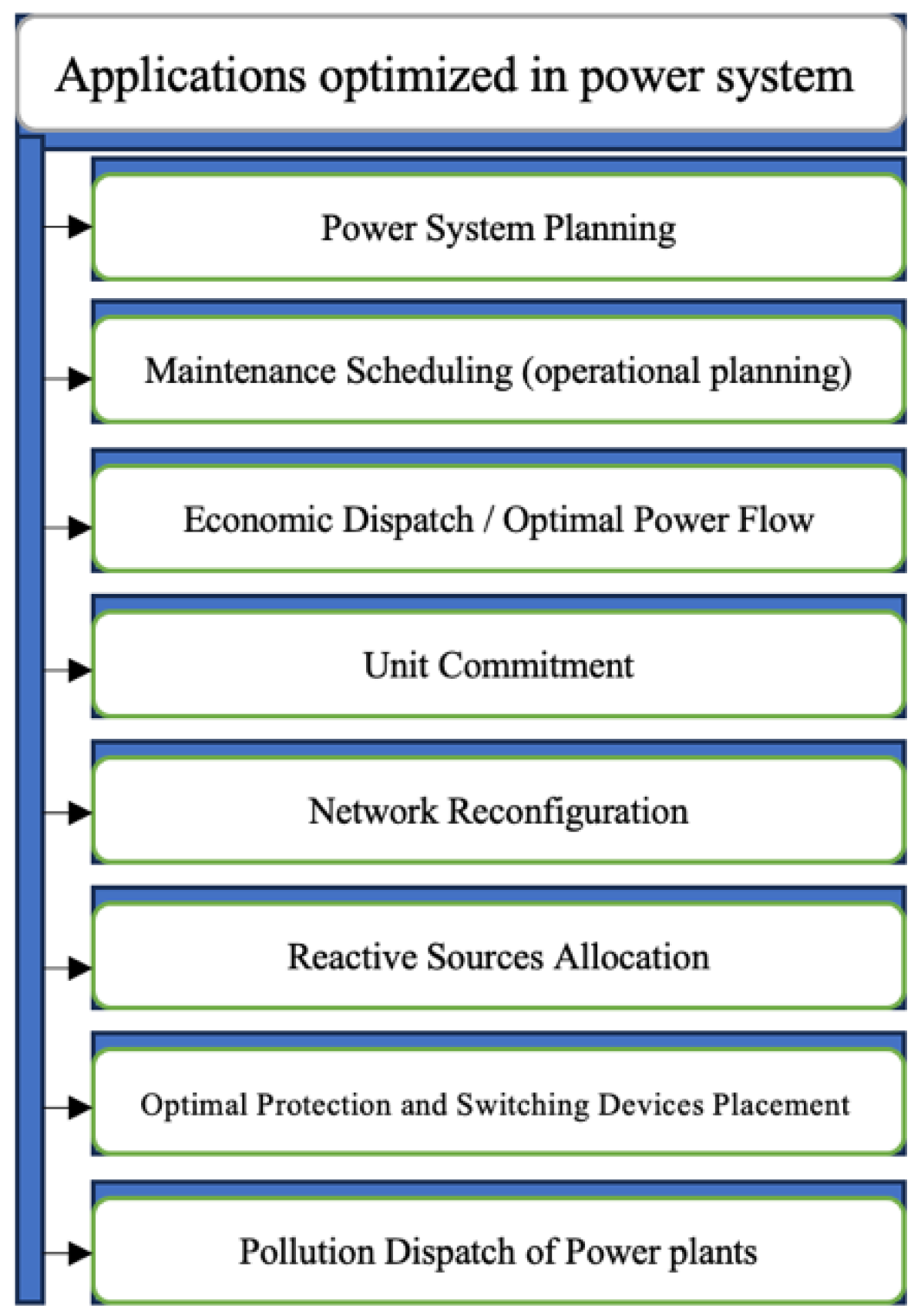 | MOPSO, IMOPSO, PSO, VCPSO, GA, GWO, ALO, WOA, FMOPF, DMOGWO, BPSO-SFLA, MOCOA-ML | [44,47,84,122,123,137,143,156,163] |
