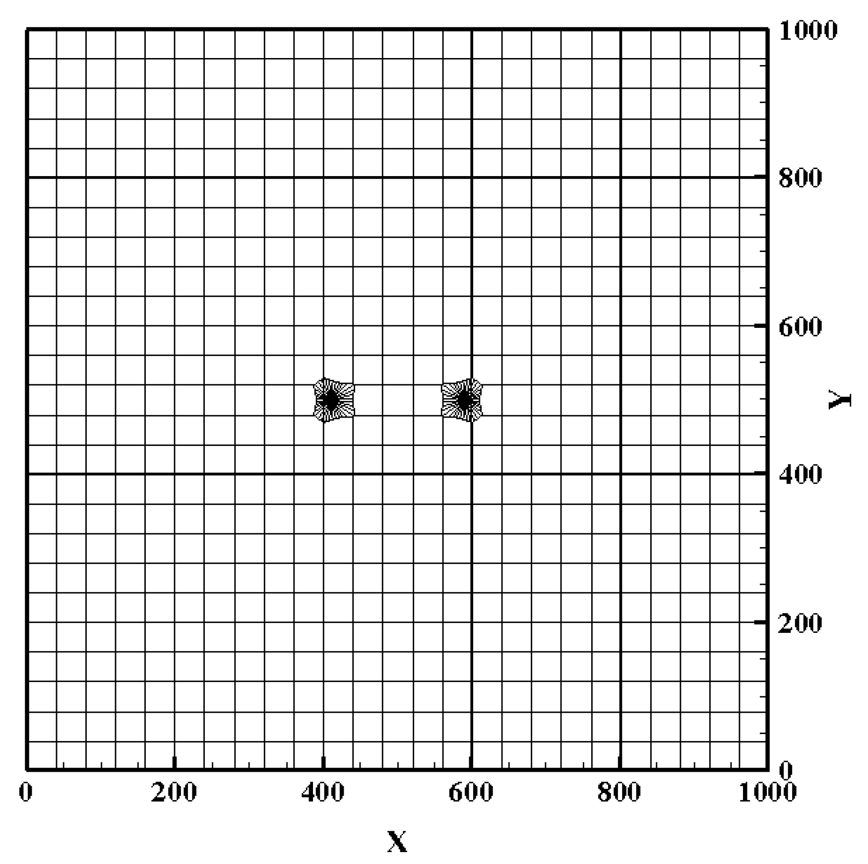Figure 8. The spatial discretization of the simulation model was performed using the IGMESH V1.0 grid dissection method. This was done on the assumption that the influence of the injected fluid on the reservoir gradually decreases with the increase in the distance from the recharge wells and that the grid size is gradually increased from the extraction wells to the surroundings. The model exhibited a thickness of 10 m in the Z direction and 1000 m in the XY direction, with the grid in the vicinity of the extraction and irrigation wells encrypted.