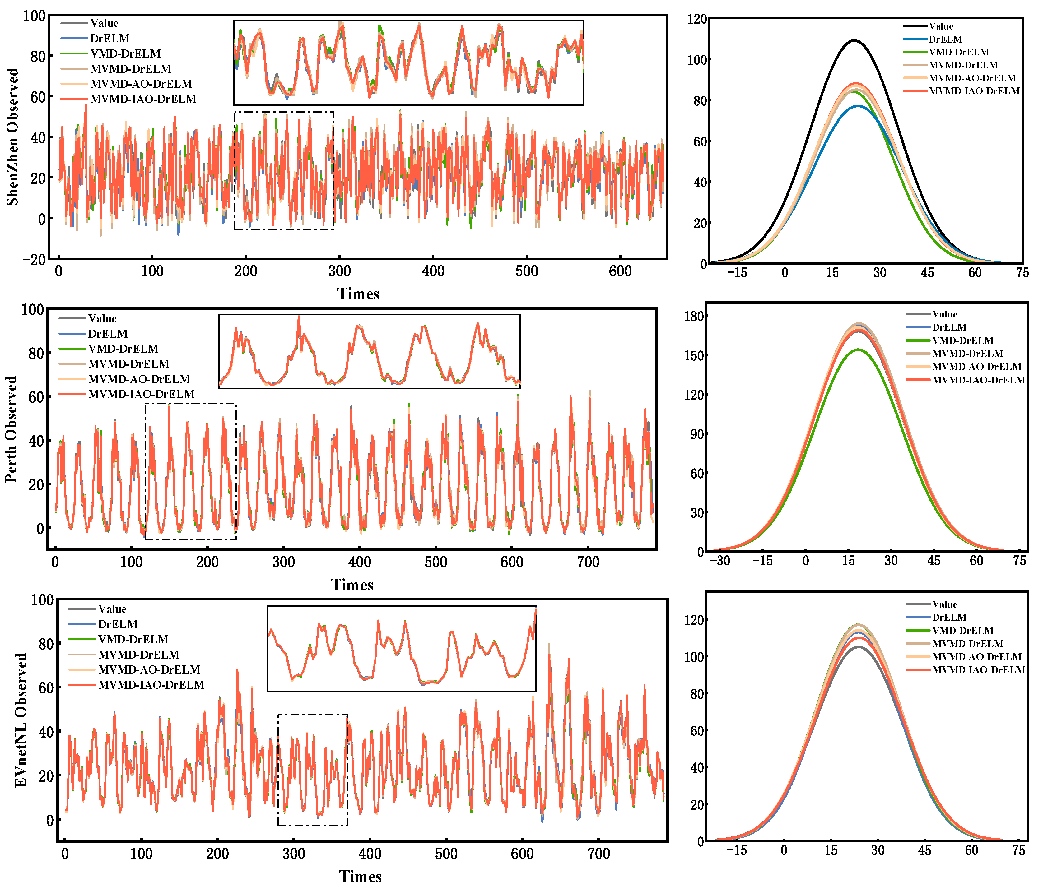5.2. Analysis of the MVMD-IAO-DrELM Model Prediction Results
