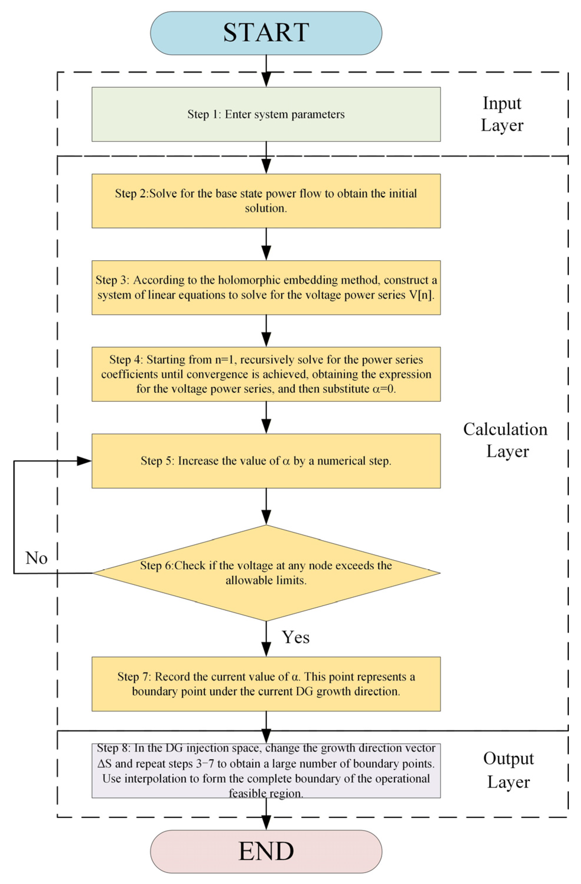 19]. Therefore, introducing the holomorphic embedding method into the characterization of the feasible region for active distribution networks can provide accurate and fast operational boundary delineation, thereby enhancing their security and stability. This approach possesses not only strong theoretical innovation and cutting-edge value but also demonstrates good applicability and promotion potential in practice.