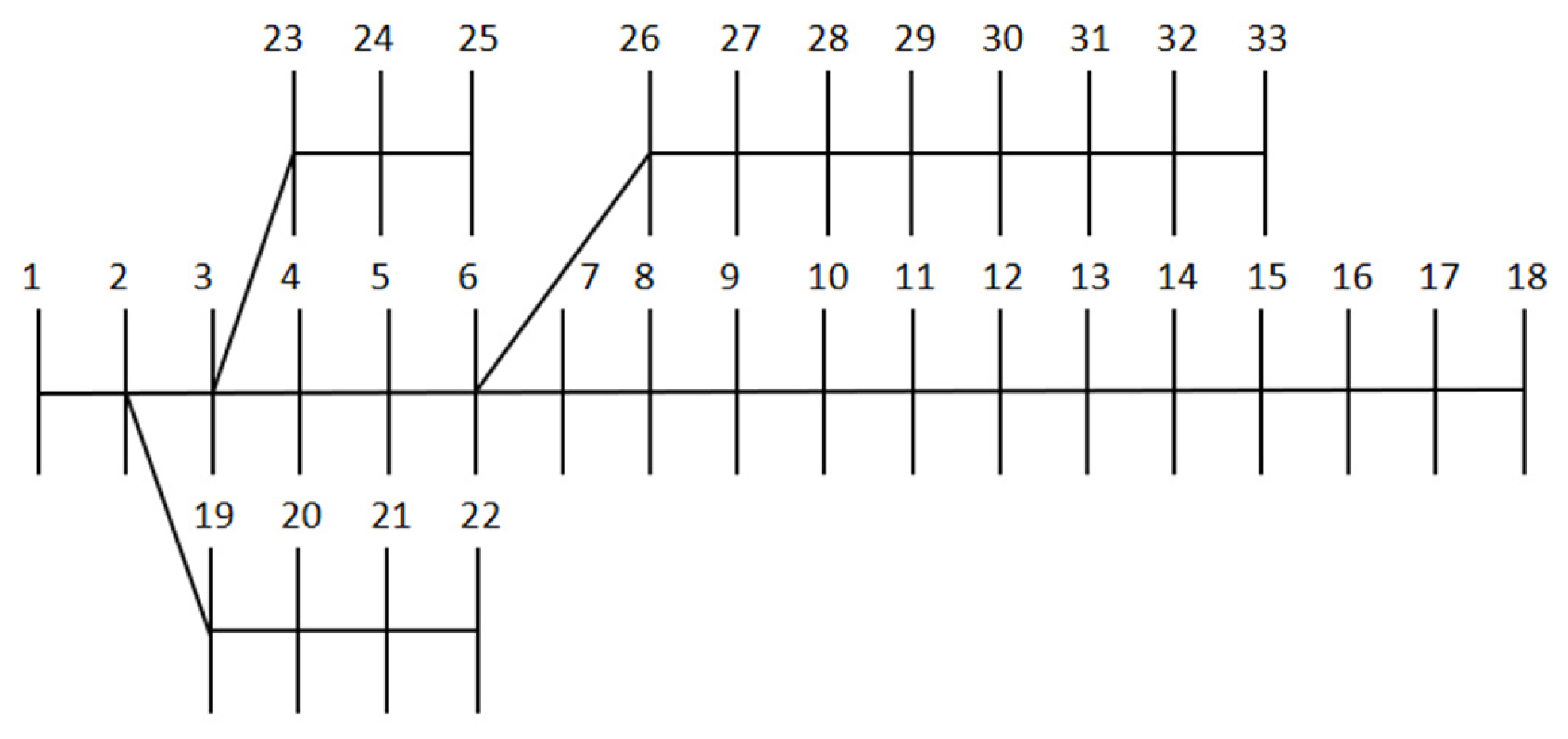 To systematically validate the computational accuracy of the proposed method, a “typical scenario coverage + random combination” strategy is adopted to design photovoltaic (PV) integration schemes within the constructed IEEE 33-node distribution network simulation system. This strategy includes not only typical scenarios commonly encountered in engineering practice, such as single-point high-power integration and multi-point balanced integration of distributed generation but also generates combined schemes with varying PV integration nodes and injection powers through random sampling. This approach mitigates the limitations associated with verification based on a single scenario type.