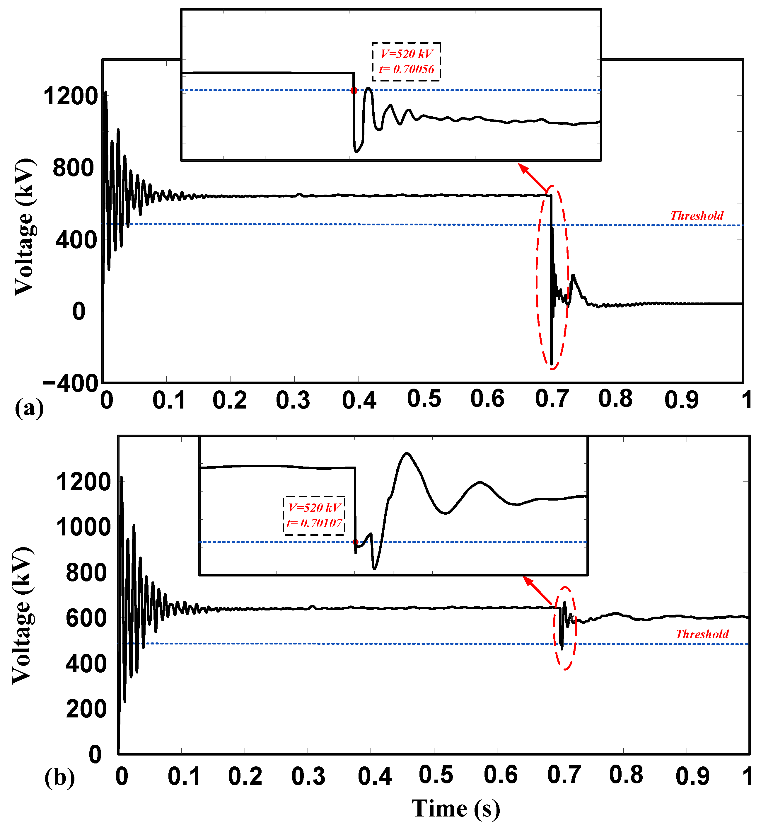 19]. Among non-pilot protection systems, the rate-of-change-of-voltage (ROCOV) method is distinguished by its high speed, simplicity, and robustness, even under worst-case conditions. Furthermore, ROCOV detection does not require extensive training datasets or complex signal processing algorithms involving large data windows and filtering, thereby enhancing its practicality and reliability [