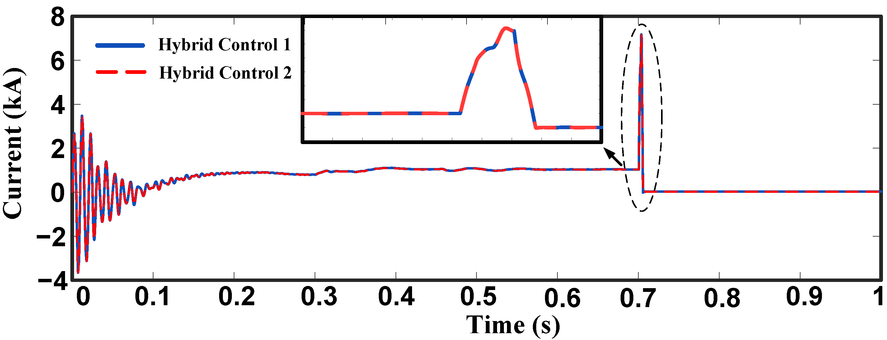 21]. Different hybrid DCCB controllers are presented in this study. ABB and Alstom have conducted tests on hybrid DCCB devices capable of interrupting currents up to 16 kA with an operating time of just 2 ms [