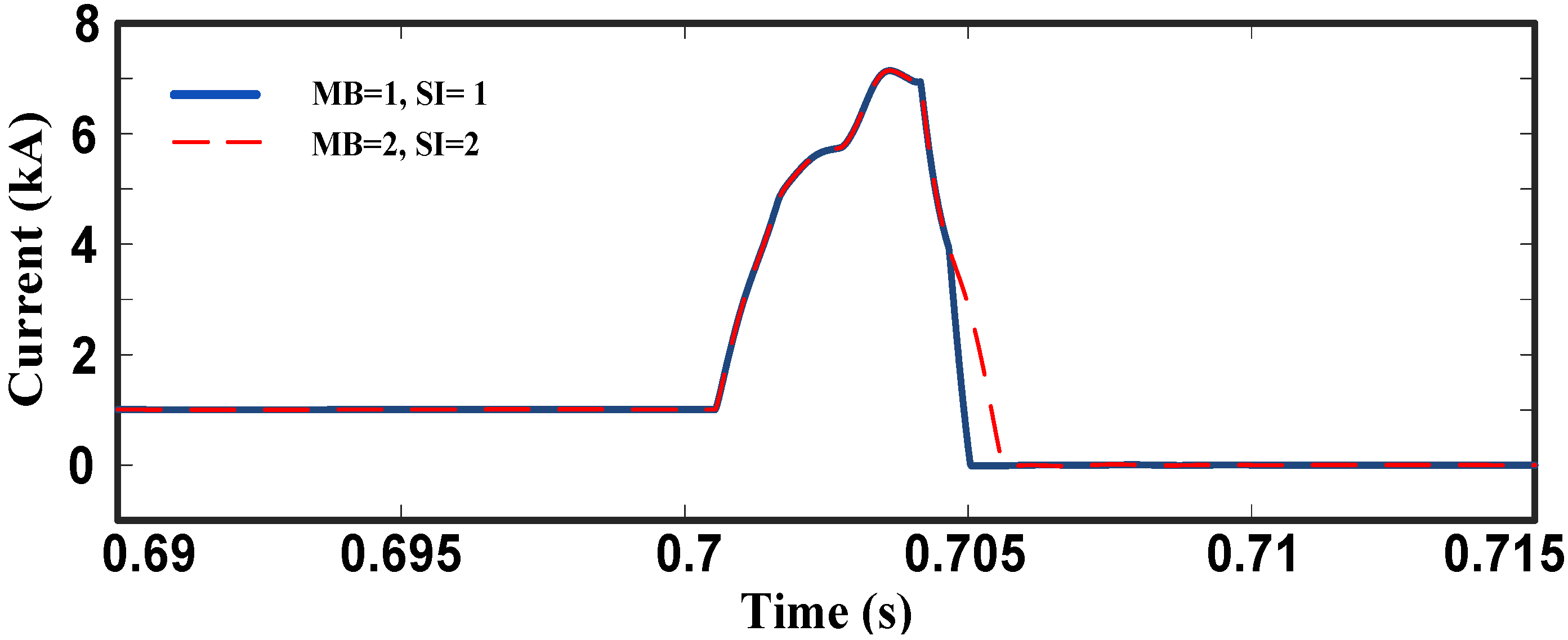 Figure 3 shows the aggregated model of the hybrid DCCB, represented by one MB and one SI. In the aggregate hybrid DCCB model, only one MB and one SI are included, which simplifies the modeling process and enhances simulation performance.
