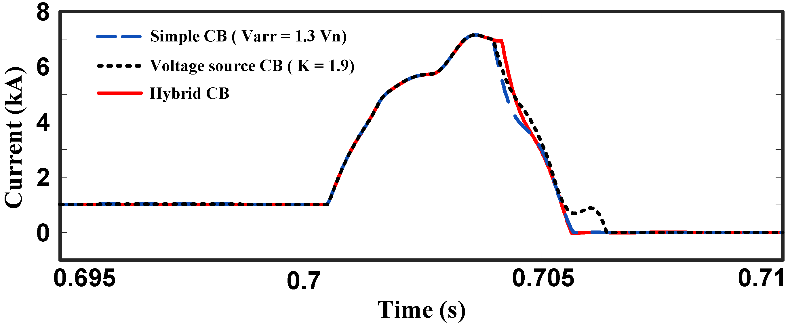 Typically, the simplified model of the DCCB is used for VSC-HVDC simulation studies and could be used to represent mechanical DCCBs. This model includes a CB with surge arresters connected in parallel.