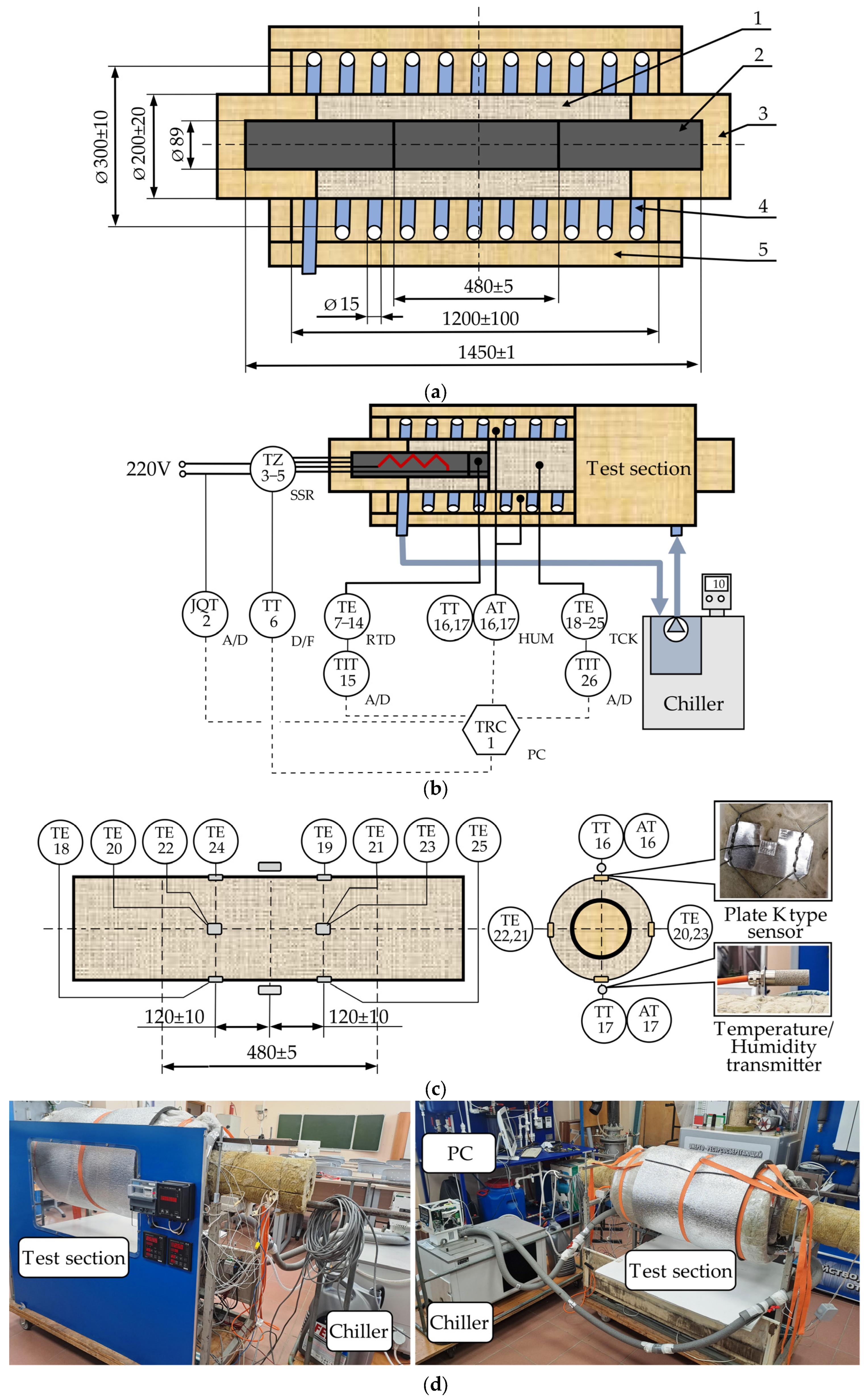 - GOST 32025-2012; Thermal Insulation Products for Building Applications. Determination of Steady-State Thermal Transmission Properties of Thermal Insulation for Circular Pipes (EN ISO 8497:1996). МНТКС: Khabarovsk, Russia, 2013. Available online: https://www.neostrom.ru/gosts/32025-2012.pdf (accessed on 1 September 2025).