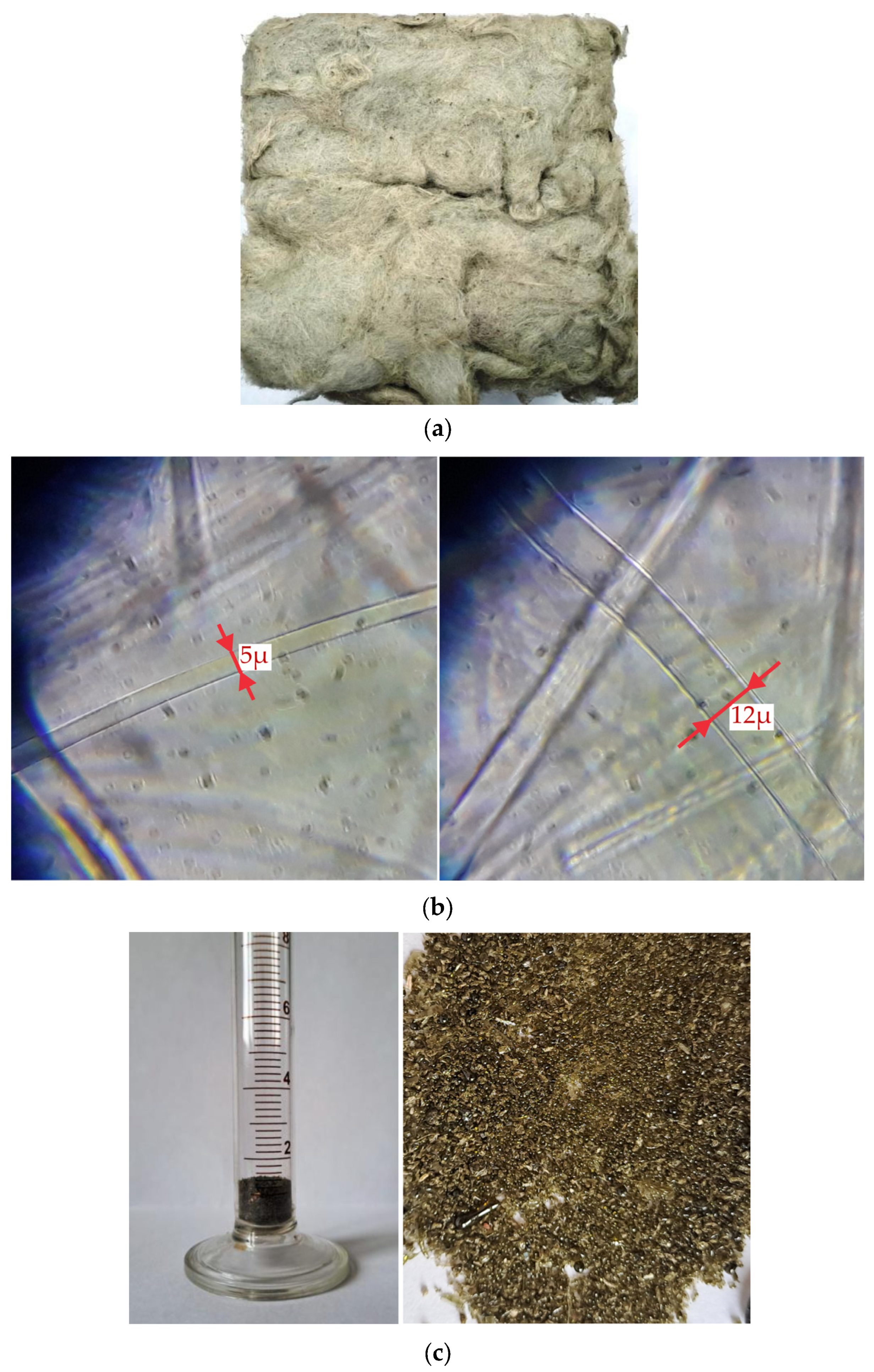 - Shishulkin, S.Y.; Starinskiy, I.V.; Tran, P.L.; Shaidorov, A.A. Influence of incineration ash and slag waste impurities on thermal conductivity of mineral basalt wool. ESSUTM Bull. 2024, 3, 98–108. [Google Scholar] [CrossRef]