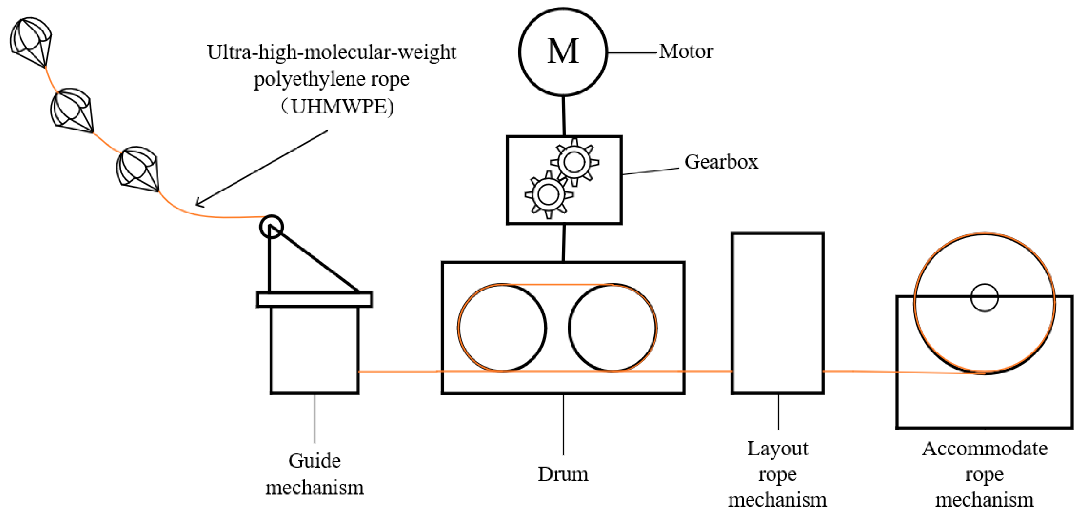 - Ye, H.; Li, W.; Lin, S.; Ge, Y.; Han, F.; Sun, Y. Experimental investigation of spooling test on the multilayer oceanographic winch with high-performance synthetic fibre rope. Ocean. Eng. 2021, 241, 110037. [Google Scholar] [CrossRef]
