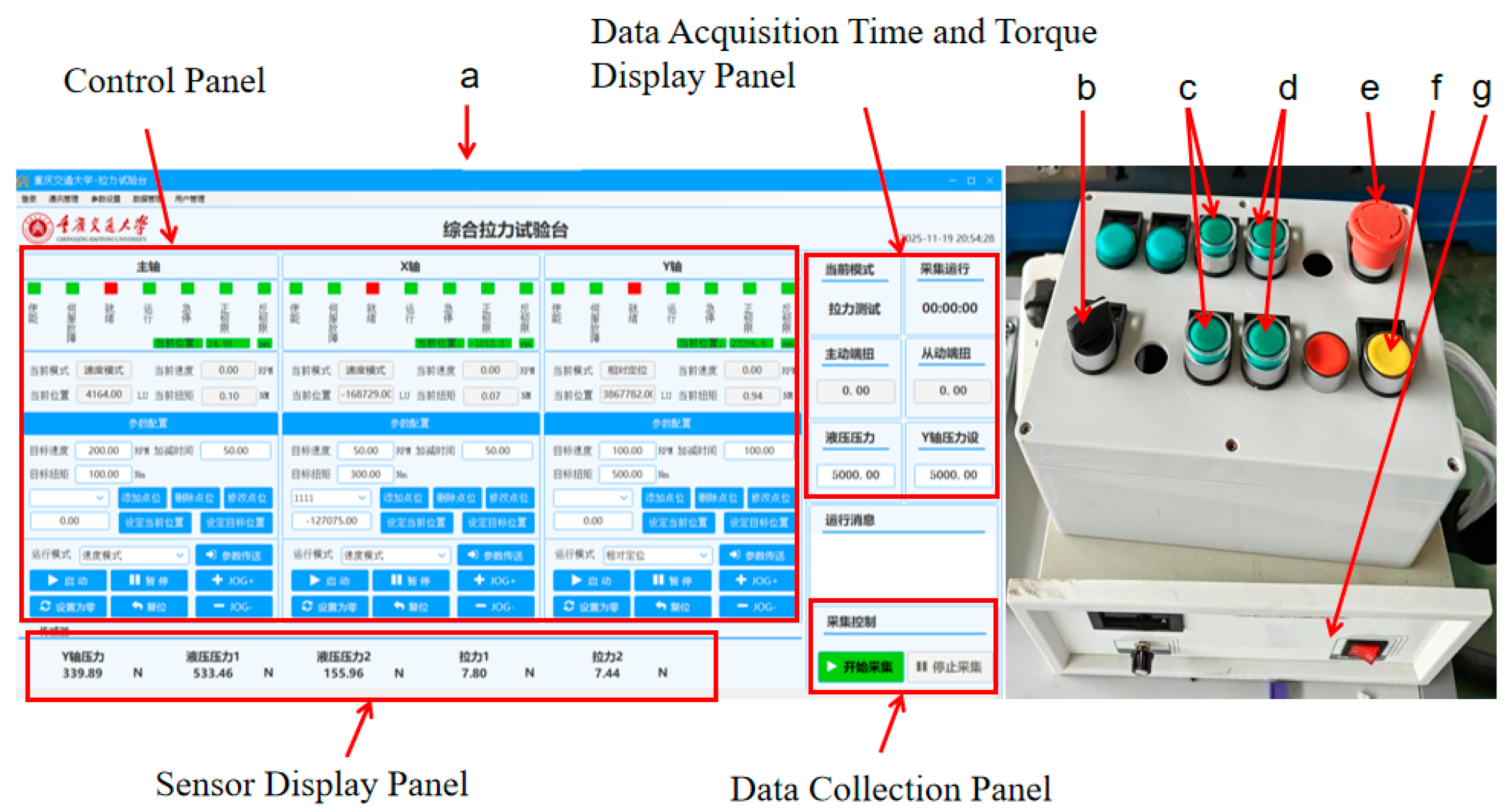 | Tension Sensor (Bengbu Dayang Sensing System Engineering Co., Ltd., Bengbu, China) | DYLY-101 | Range: ±10,000 N; Accuracy: 0.03% of full scale |