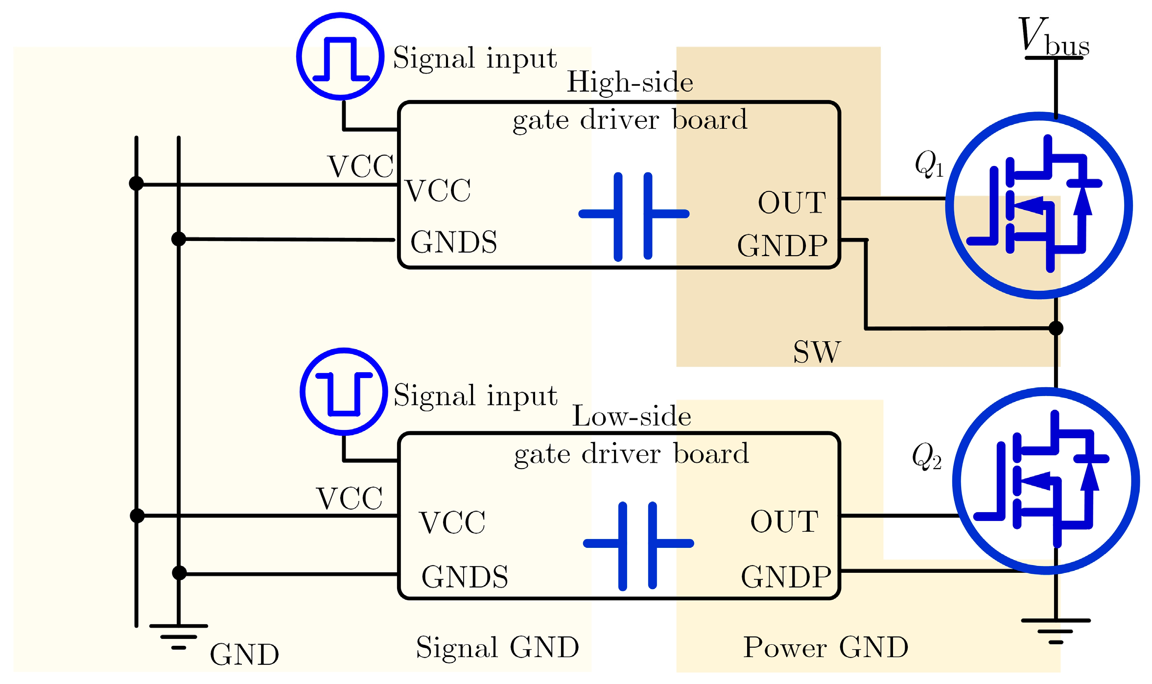 - Anurag, A.; Acharya, S.; Gohil, G.; Bhattacharya, S. A Gate Driver Design for Medium Voltage Silicon Carbide Power Devices with High dv/dt. In Proceedings of the IECON 2018-44th Annual Conference of the IEEE Industrial Electronics Society, Washington, DC, USA, 21–23 October 2018. [Google Scholar]