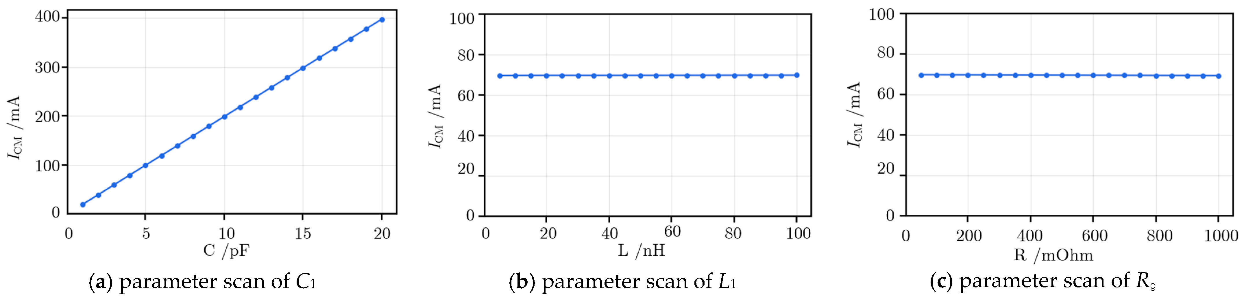 2.2. Characteristics of Common-Mode Current Magnitude in Drive Circuits