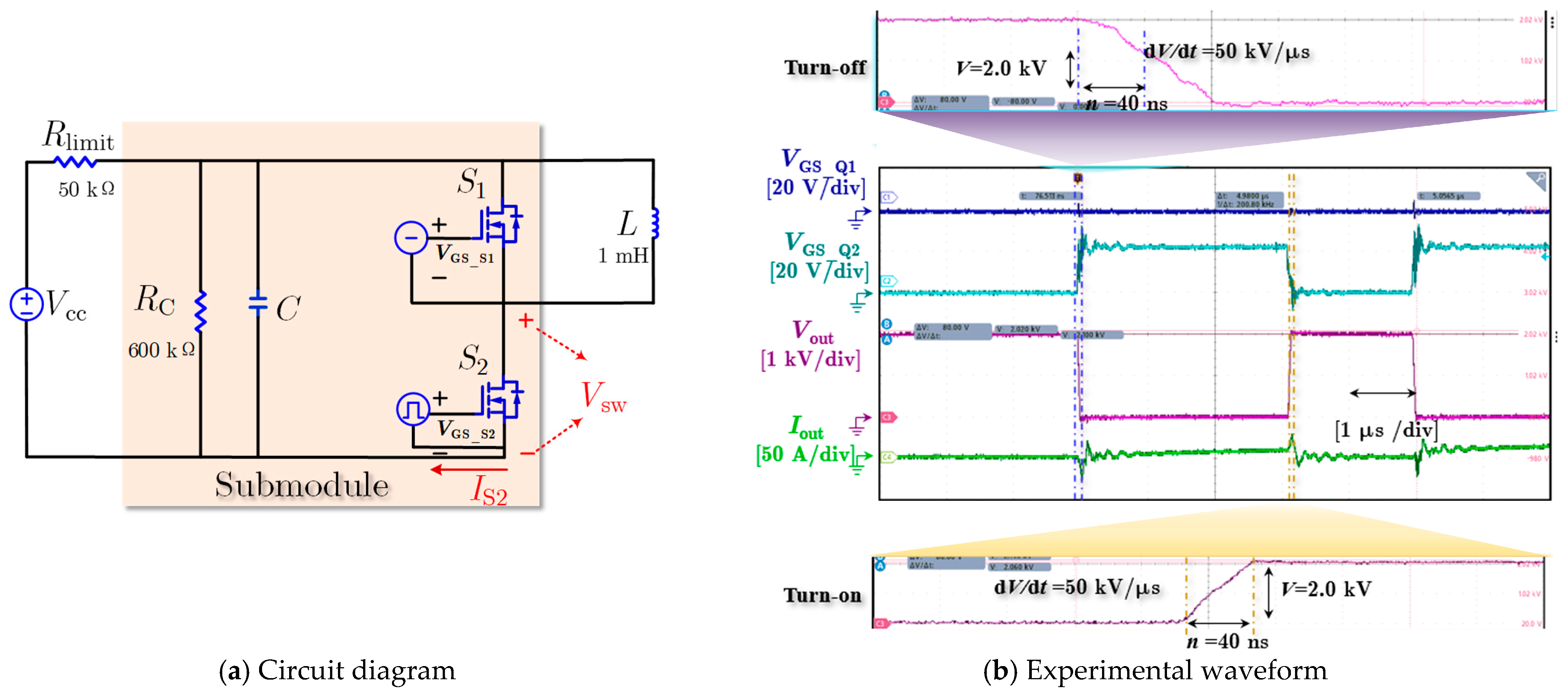 - Anurag, A.; Acharya, S.; Prabowo, Y.; Gohil, G.; Bhattacharya, S. Design Considerations and Development of an Innovative Gate Driver for Medium-Voltage Power Devices with High dv/dt. IEEE Trans. Power Electron. 2019, 34, 5256–5267. [Google Scholar] [CrossRef]