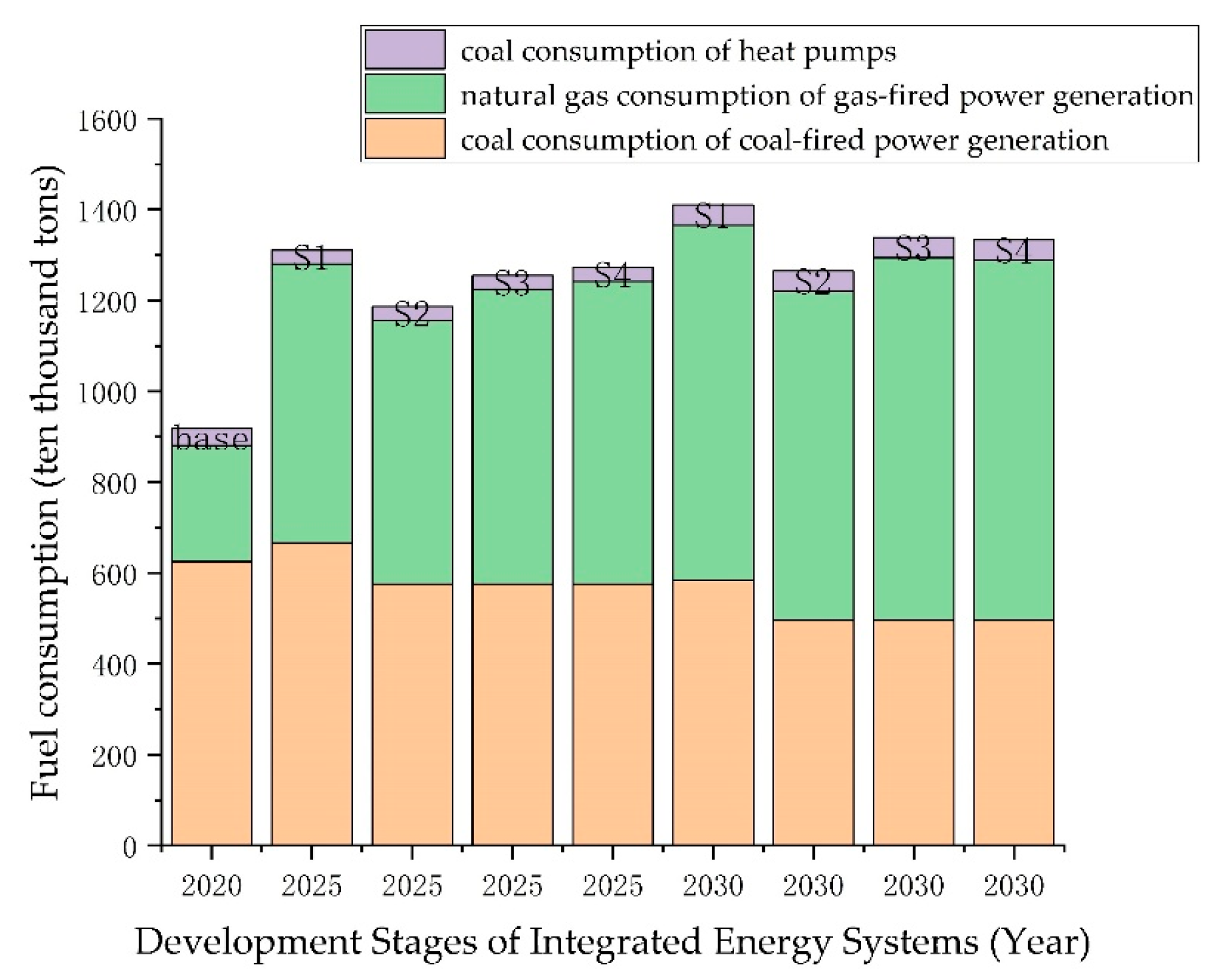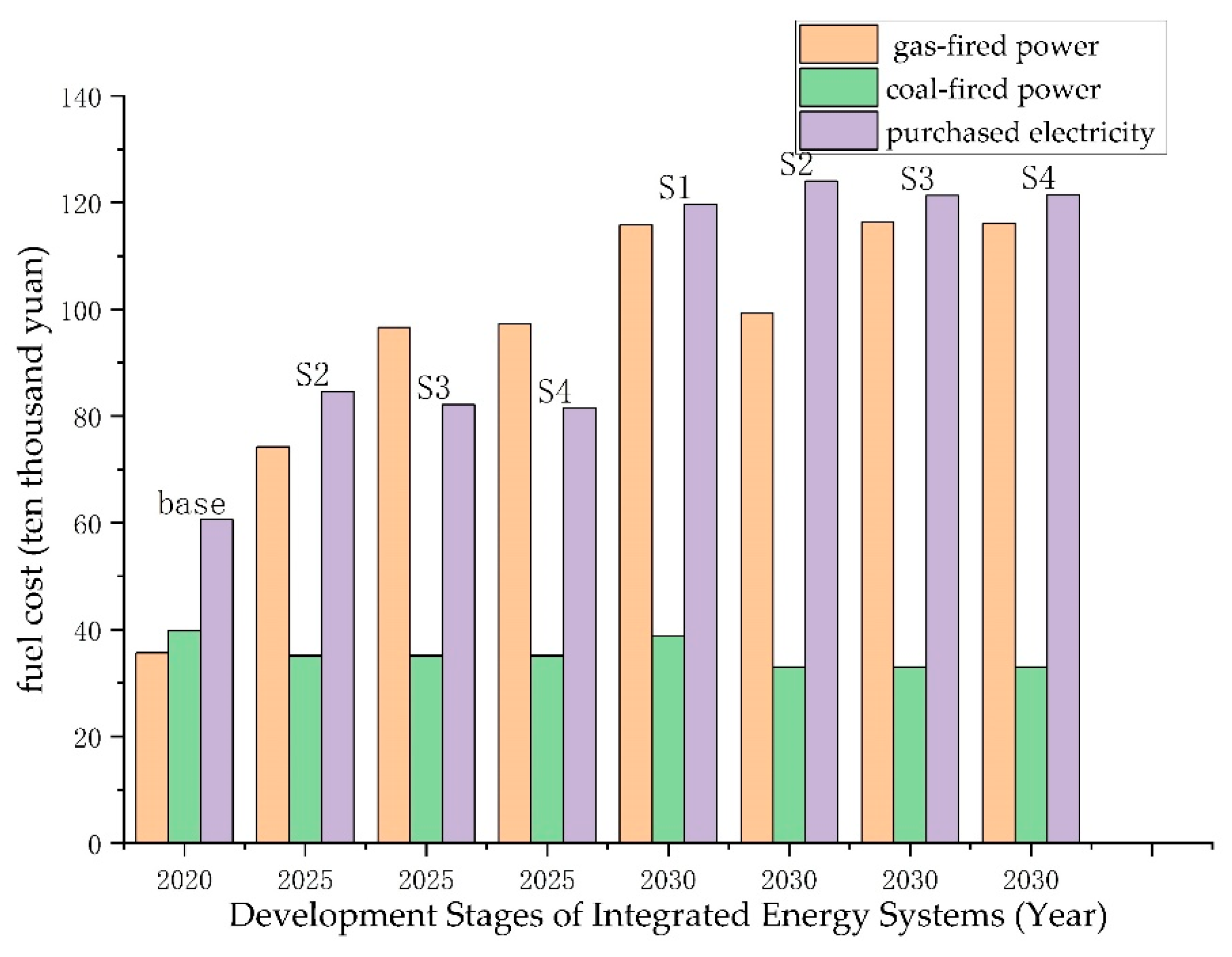 - Coordinated development of renewable energy and hydrogen can significantly reduce fossil fuel consumption and CO2 emissions while maintaining acceptable system costs. Compared with the 2020 baseline, the S2 and S3 scenarios for 2030 achieve substantial reductions in coal and natural gas consumption, leading to notable decreases in fuel costs and system emission intensity. For example, by 2030, the introduction of large-scale renewable energy and hydrogen (S2) is projected to reduce fossil fuel consumption by around 20% relative to the S1 scenario and lower the fuel cost of fossil units by about 5% compared to S3. At the same time, the levelized cost of energy remains within a reasonable range, suggesting that deep decarbonization of the urban energy system can be compatible with economic feasibility.