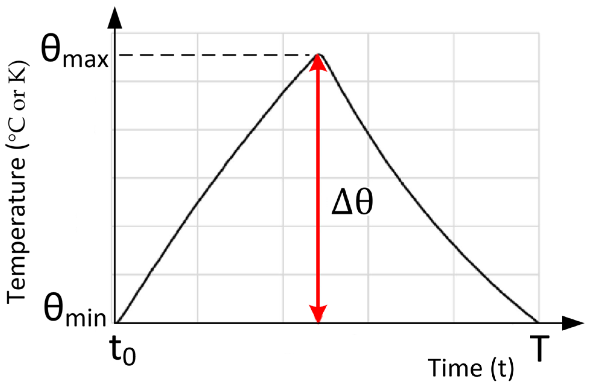 96]. The approach allows accelerated testing under variable conditions to be expressed in terms of an equivalent single-temperature exposure, facilitating direct comparison with conventional ageing data. It is inherently assumed that thermal ageing remains the predominant degradation mechanism and that temperature governs the overall rate of material deterioration [