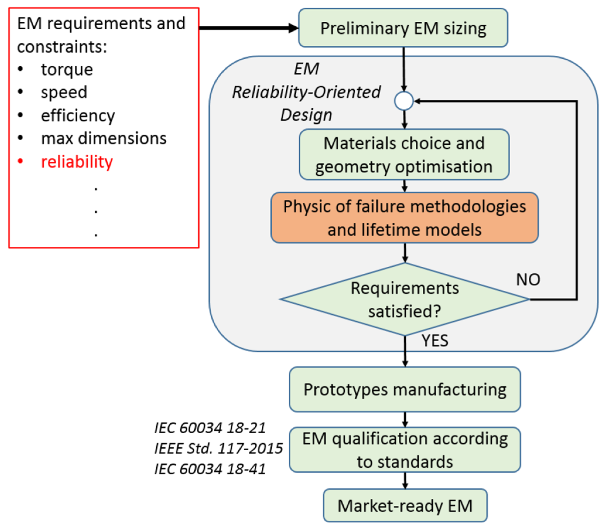 24]. Such models enable condition-based strategies that help avoid premature replacement or unexpected failure, aligning with the principles of reliability-oriented design (ROD). They also assist engineers in making informed choices regarding material selection, thermal class assignment, and operational margins during the design phase. Furthermore, as EMs are increasingly integrated into high-demand and thermally constrained environments, accurate insulation lifetime modelling is becoming essential for ensuring availability, functional safety, and cost-effective operation across the machine lifecycle [