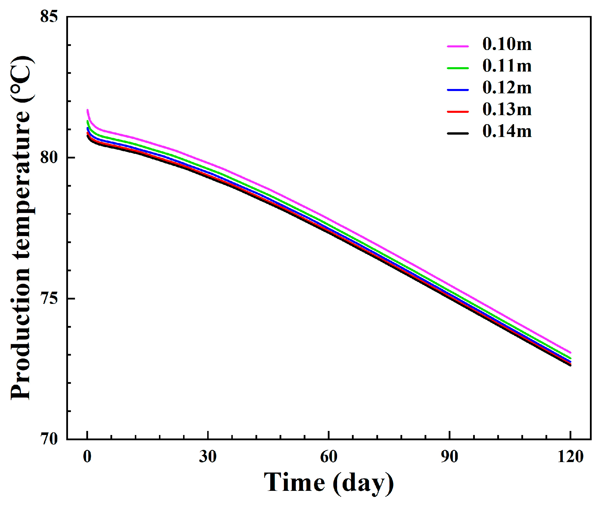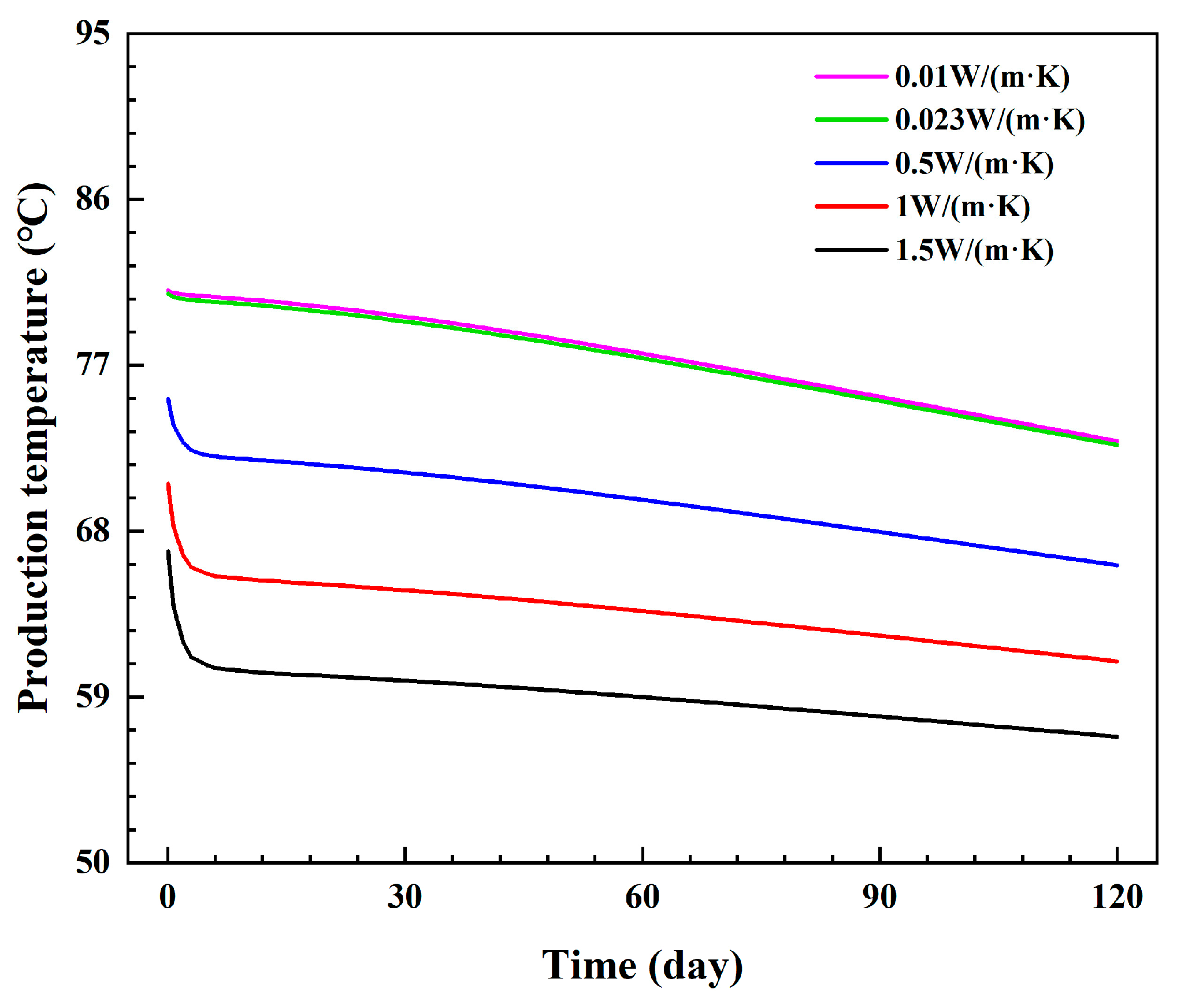 | Wellbore Parameters | Inner Pipe Thermal Conductivity | Inner Pipe Thickness | Inner Pipe Diameter | Injection–Production Spacing |