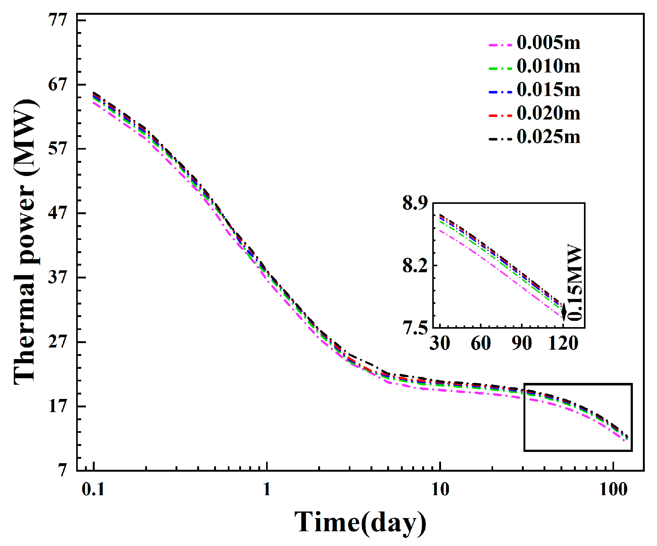 | P | Thermal power, MW |