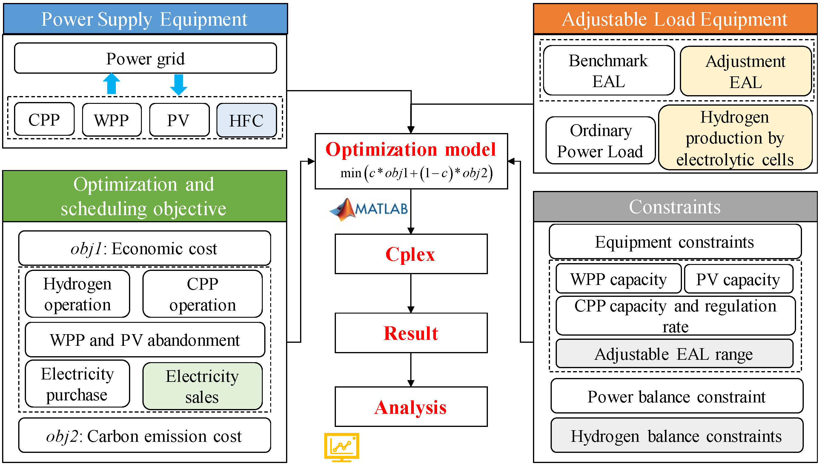- A comprehensive energy-scheduling optimization model specifically designed for industrial parks engaged in aluminum electrolysis and hydrogen production is established. The proposed IES considers the power grid, thermal power units, new energy, electrolytic aluminum load, and ordinary load, as well as the manufacture, storage, and utilization of hydrogen.