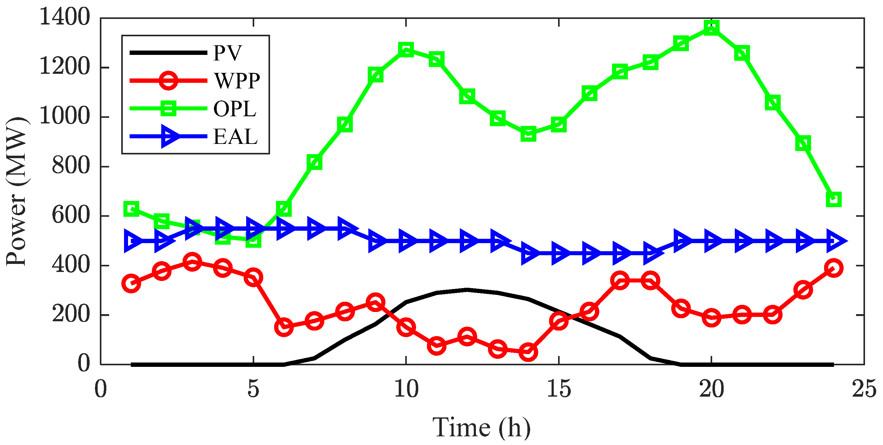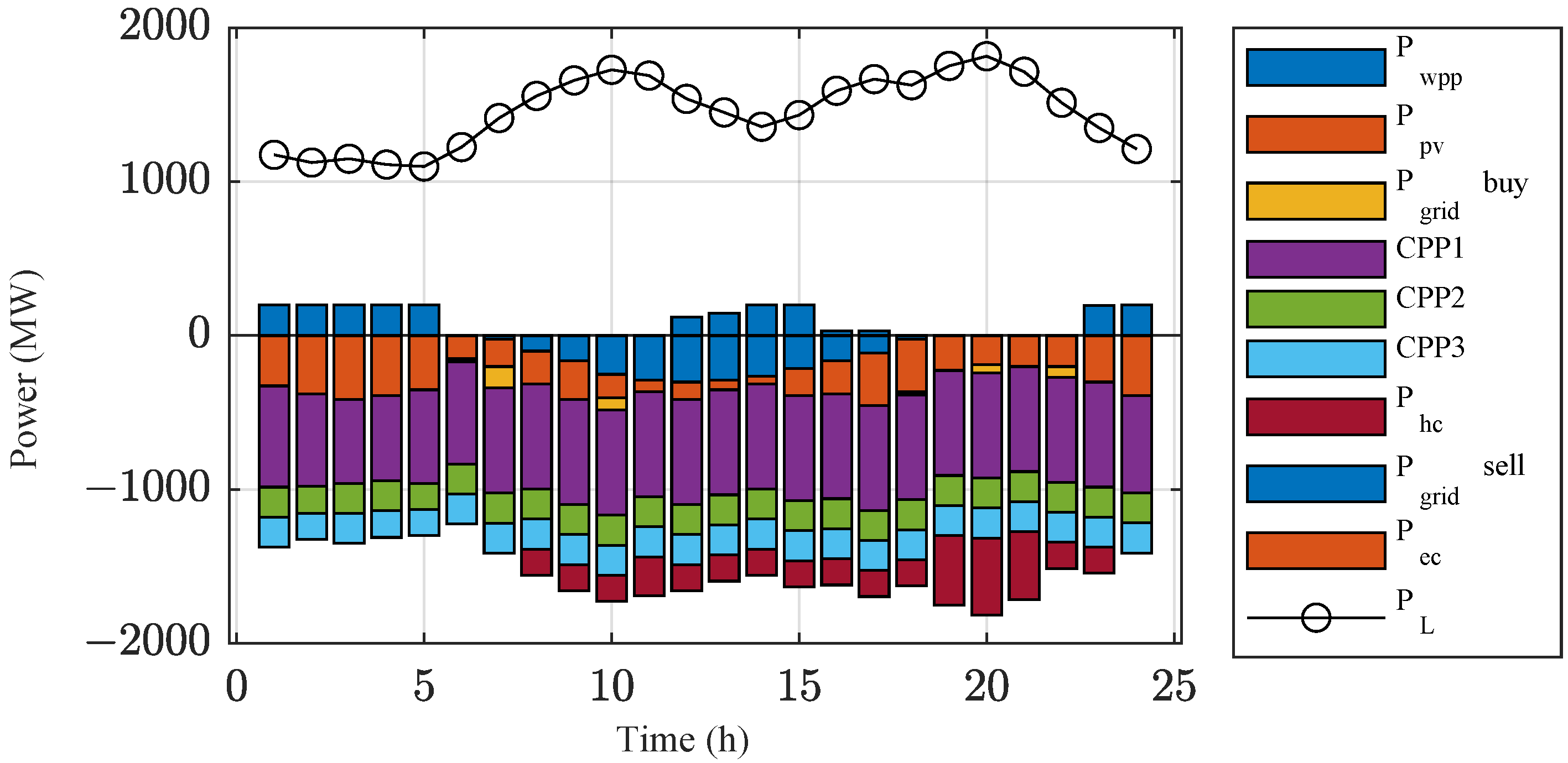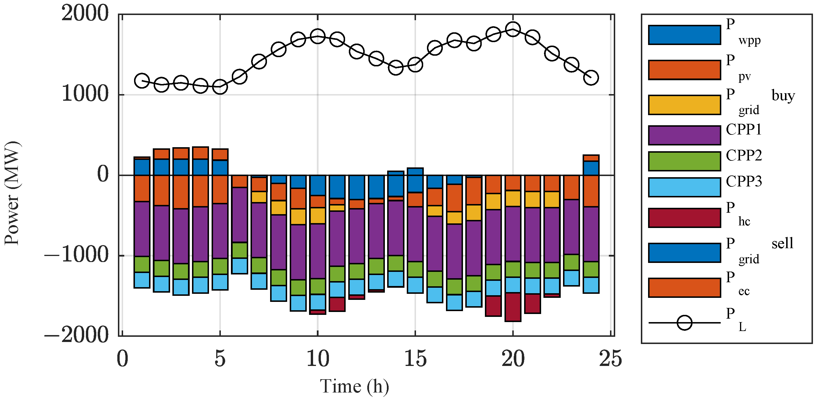 - Cost of the CPP : This cost refers to the power generation cost of CPP, including the nonlinear part and the advance part, defined as shown in Equation (17):