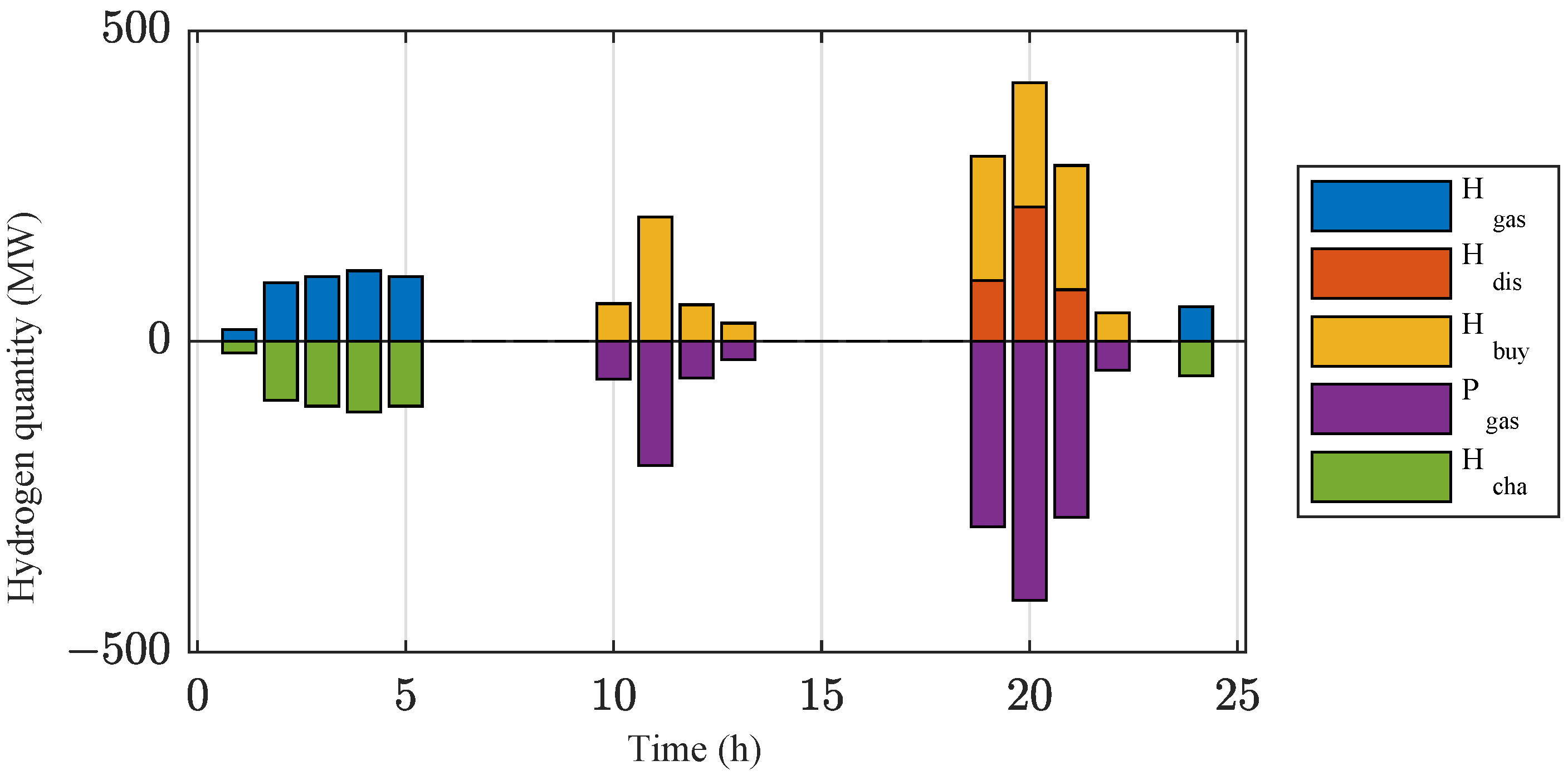 - Hydrogen purchase cost : This part is due to the cost of purchasing hydrogen from outside, which can be defined as shown in Equation (19):